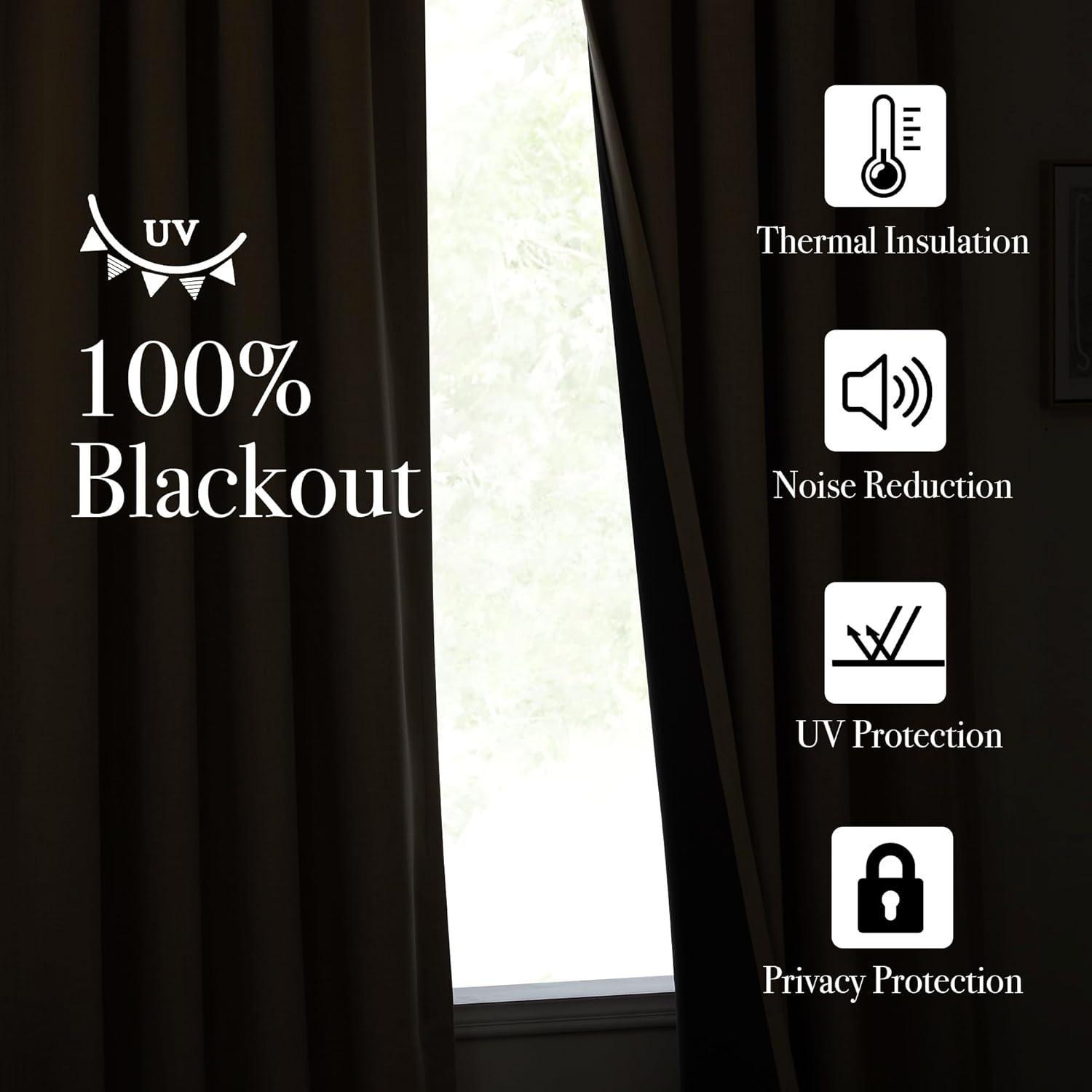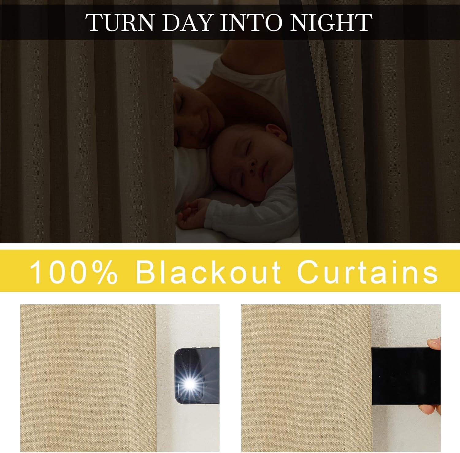 100% Blackout: The faux linen real blackout curtains sewn in grey liner backing to keep out the sunlight and UV ray completely. Also offer you a really dark environment, bringing you a good night's sleep during the day.