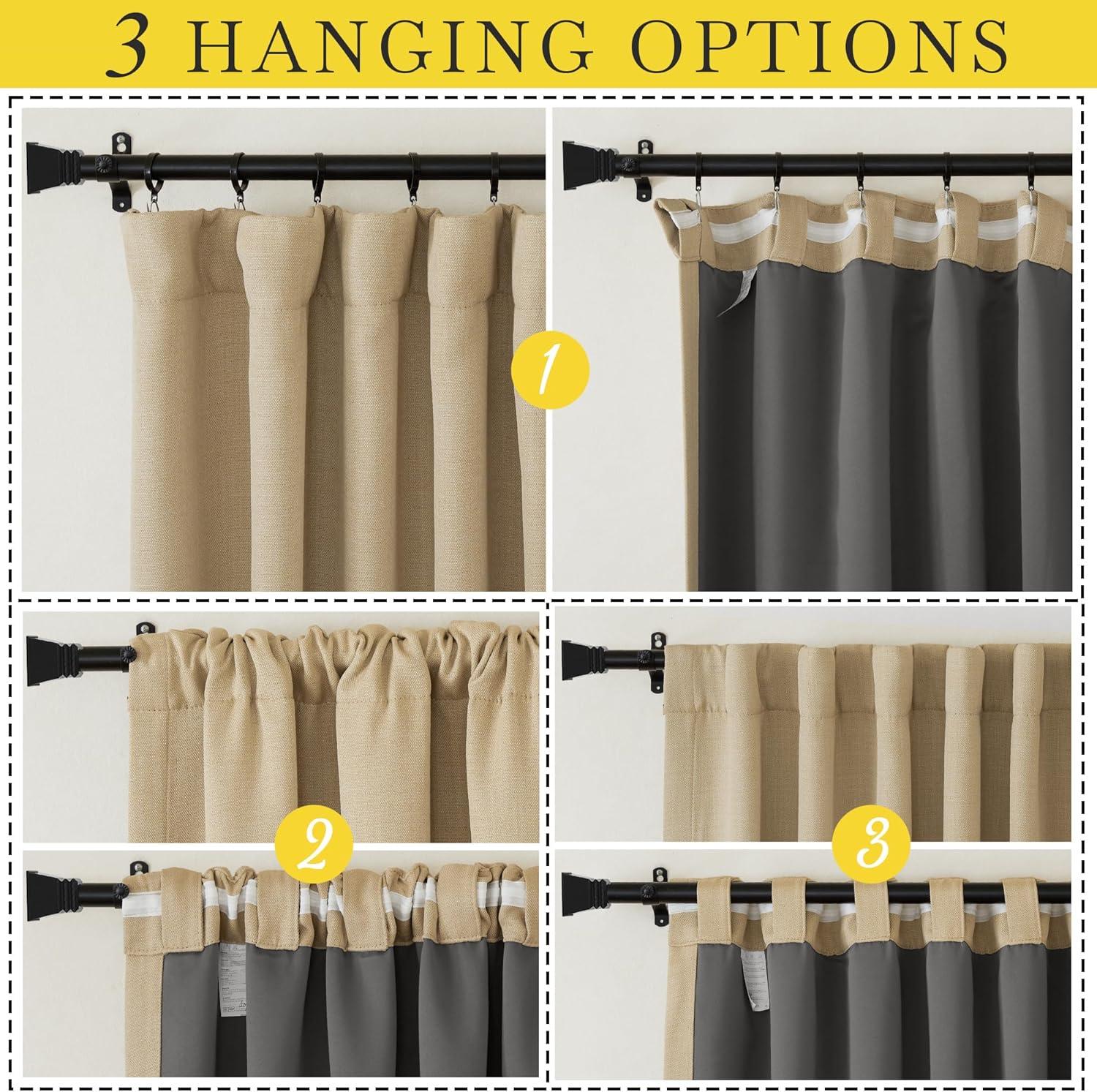 Hanging Options: You can hang your new blackout drapes with 3 styles: back tab, rod pocket, or with your own small hooks on the hook belt to let them gently hang downward, then you will get elegant & special pinch pleated curtains.