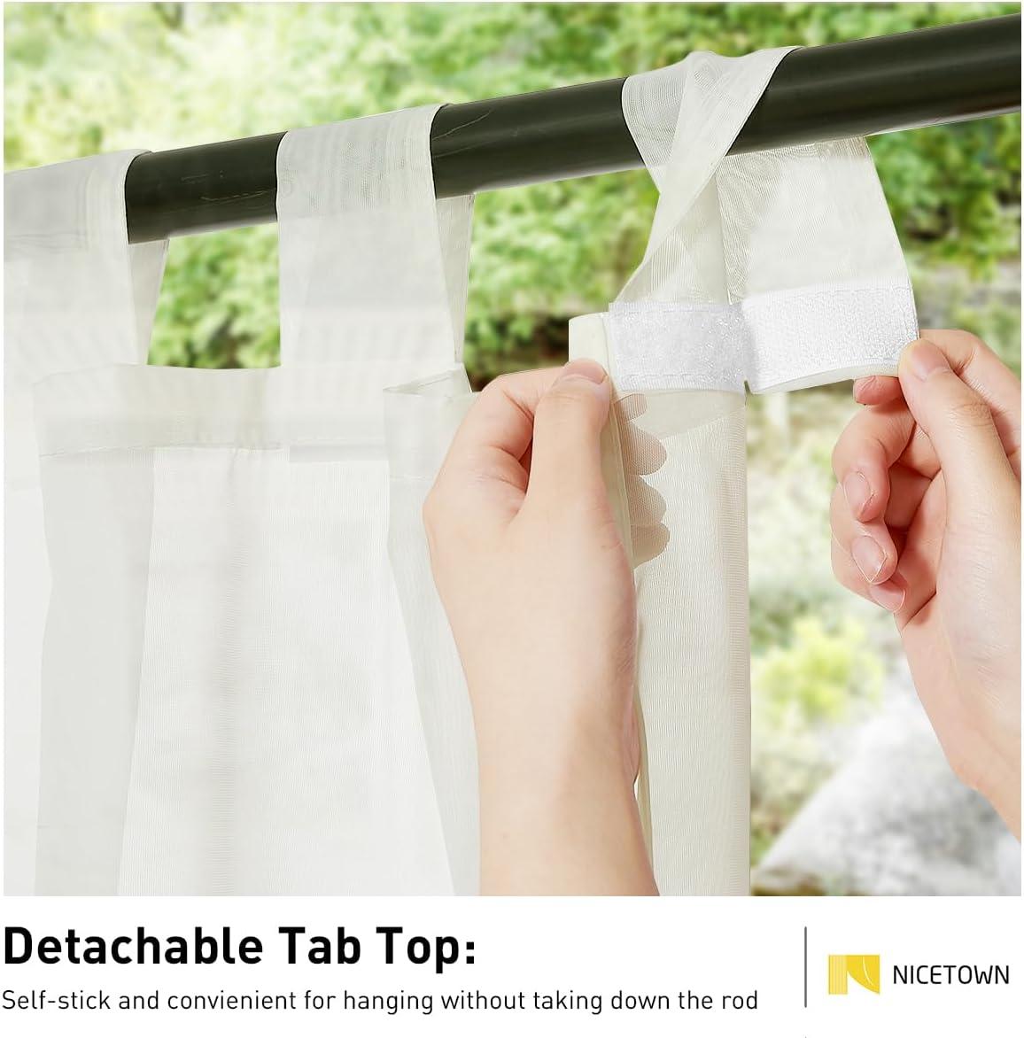 Detachable Tab Top: The self-stick tab top can make it detachable so that you needn't take down the rods while hanging curtains which is convenient and won't bother with grommet rust.