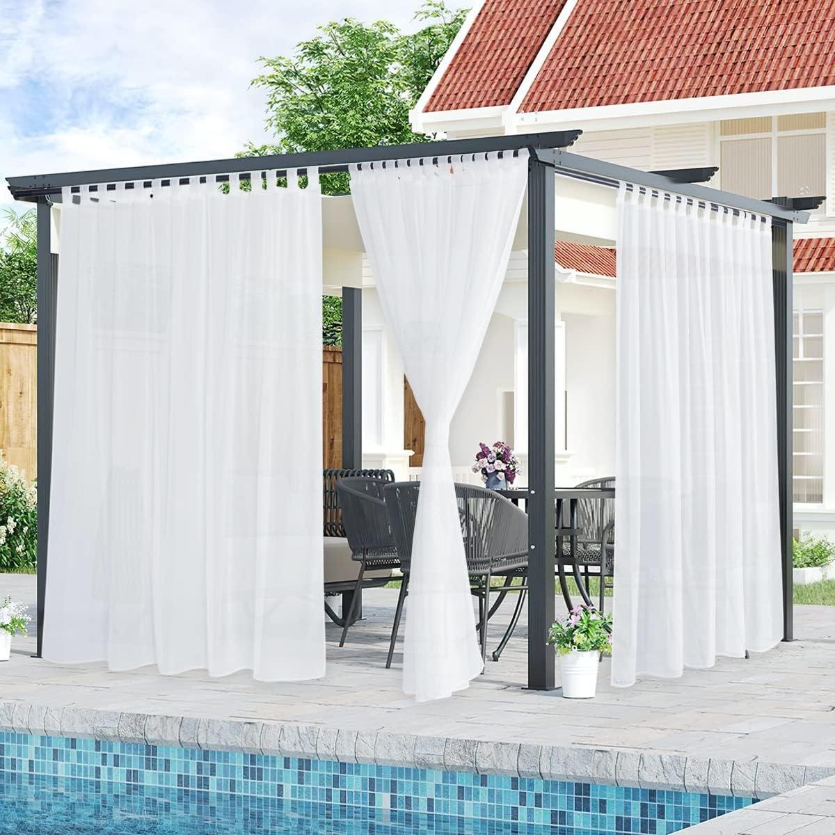 NICETOWN 2 Panels Indoor Outdoor Waterproof Patio Curtains, Sticky Tab Top Soft Voile Sheer Vertical Indoor Outdoor Drapes Easy Hanging for Porch/Cabana, Ivory, W54 x L96(Pure White)