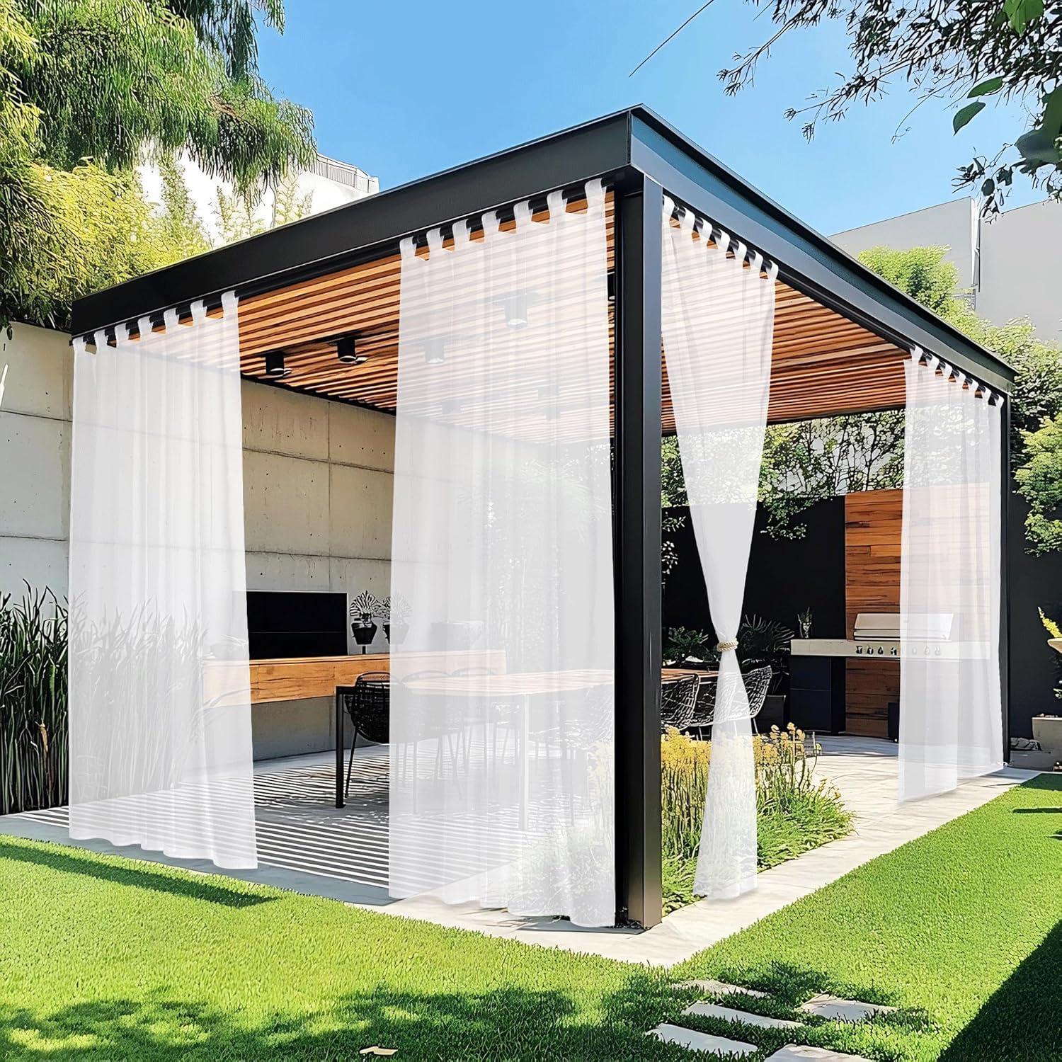 Score big savings on NICETOWN 2 Panels Indoor Outdoor Waterproof Patio Curtains, Sticky Tab Top Soft Voile Sheer Vertical Indoor Outdoor Drapes Easy Hanging for Porch/Cabana, Ivory, W54 x L96(Pure White) during our back-to-school sale. Limited quantities available.