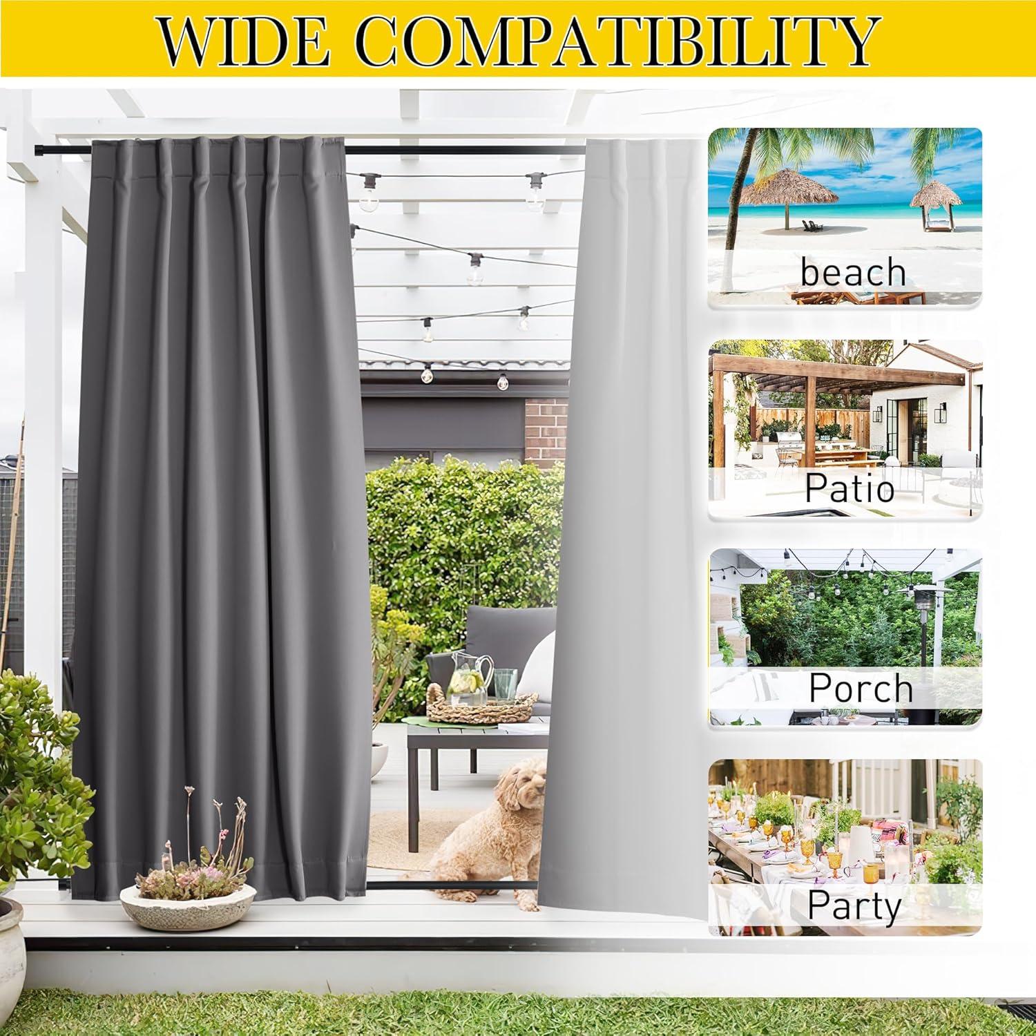 Serve Well: Fit both indoor and outdoor demand, also can serve as shower curtains. These outdoor curtains can change your porch, pool, and patio to an outdoor room with privacy and safety.