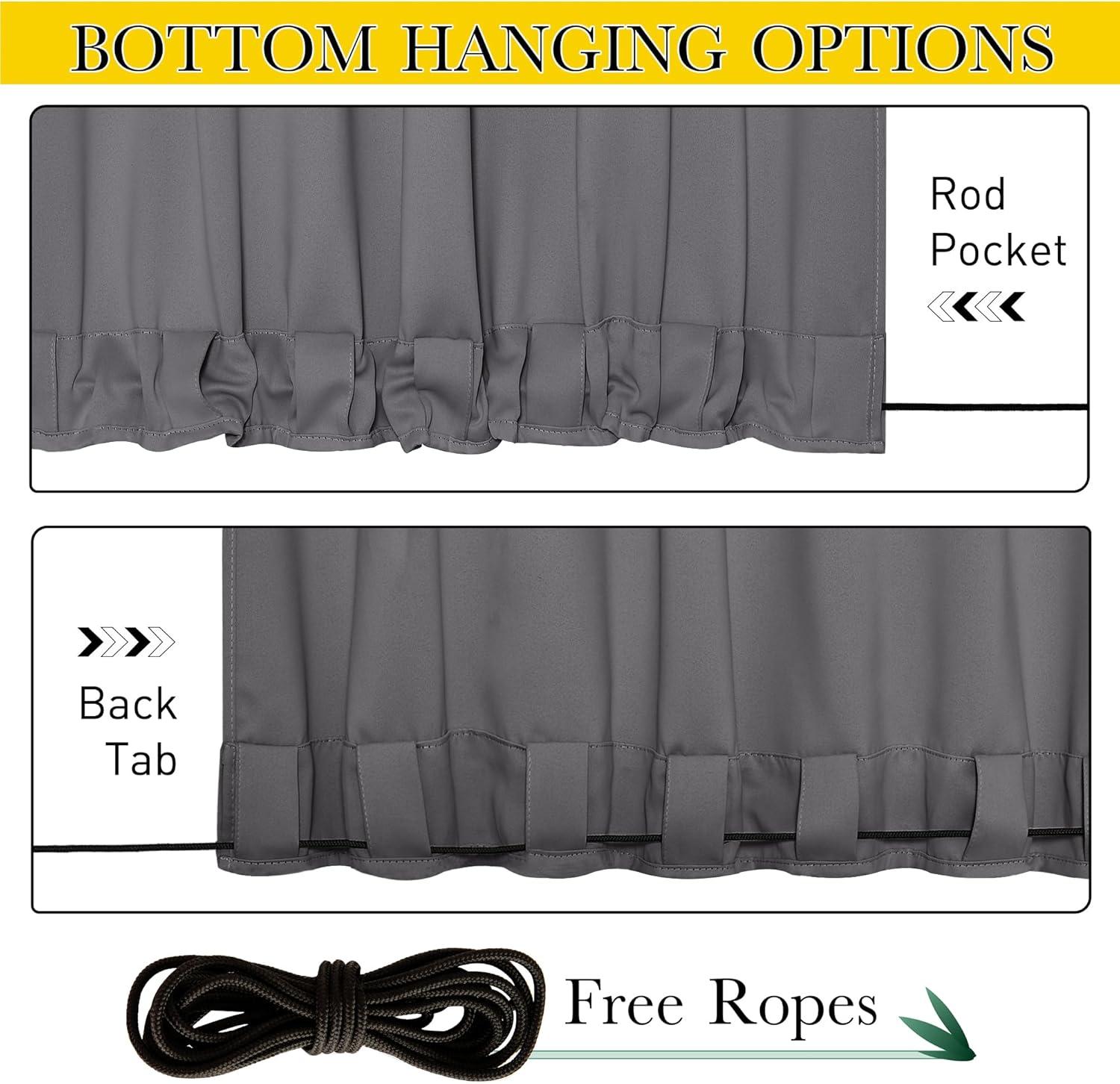 Fixable Design: Pocket and back tab at top and bottom make the curtain weighted and fixed to avoid blowing and flapping for providing you with much privacy while keeping sun or rain out.