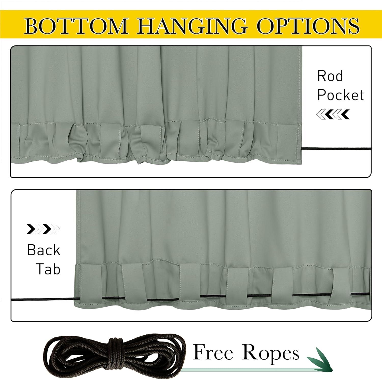 Fixable Design: Pocket and back tab at top and bottom make the curtain weighted and fixed to avoid blowing and flapping for providing you with much privacy while keeping sun or rain out.