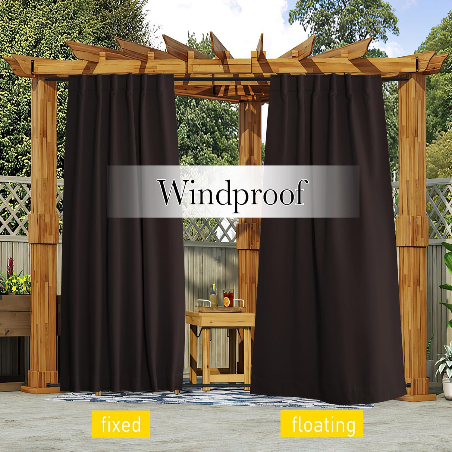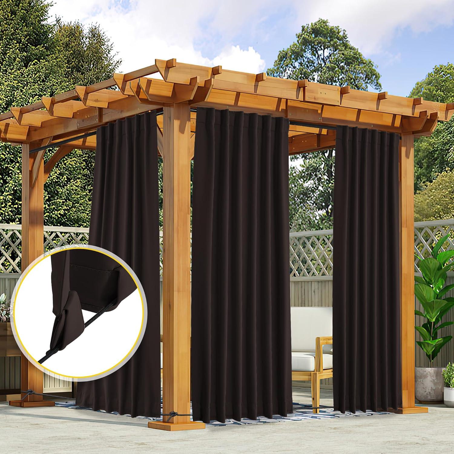 NICETOWN 2 Panels Outdoor Curtains for Patio Waterproof, Top & Bottom Fixed Waterproof Outdoor Drapes with Free Rope, Privacy Sun Blocking Shades for Gazebo, Pergolas, Biscotti Beige, W52 x L84(Toffee Brown)