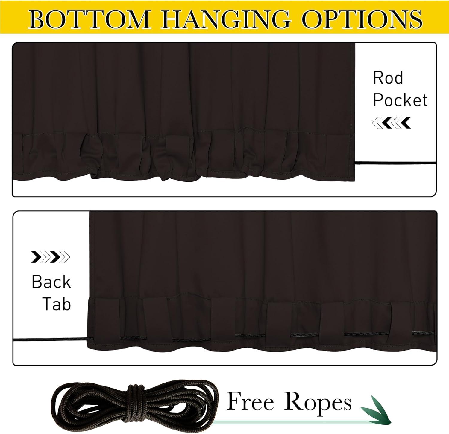 Fixable Design: Pocket and back tab at top and bottom make the curtain weighted and fixed to avoid blowing and flapping for providing you with much privacy while keeping sun or rain out.