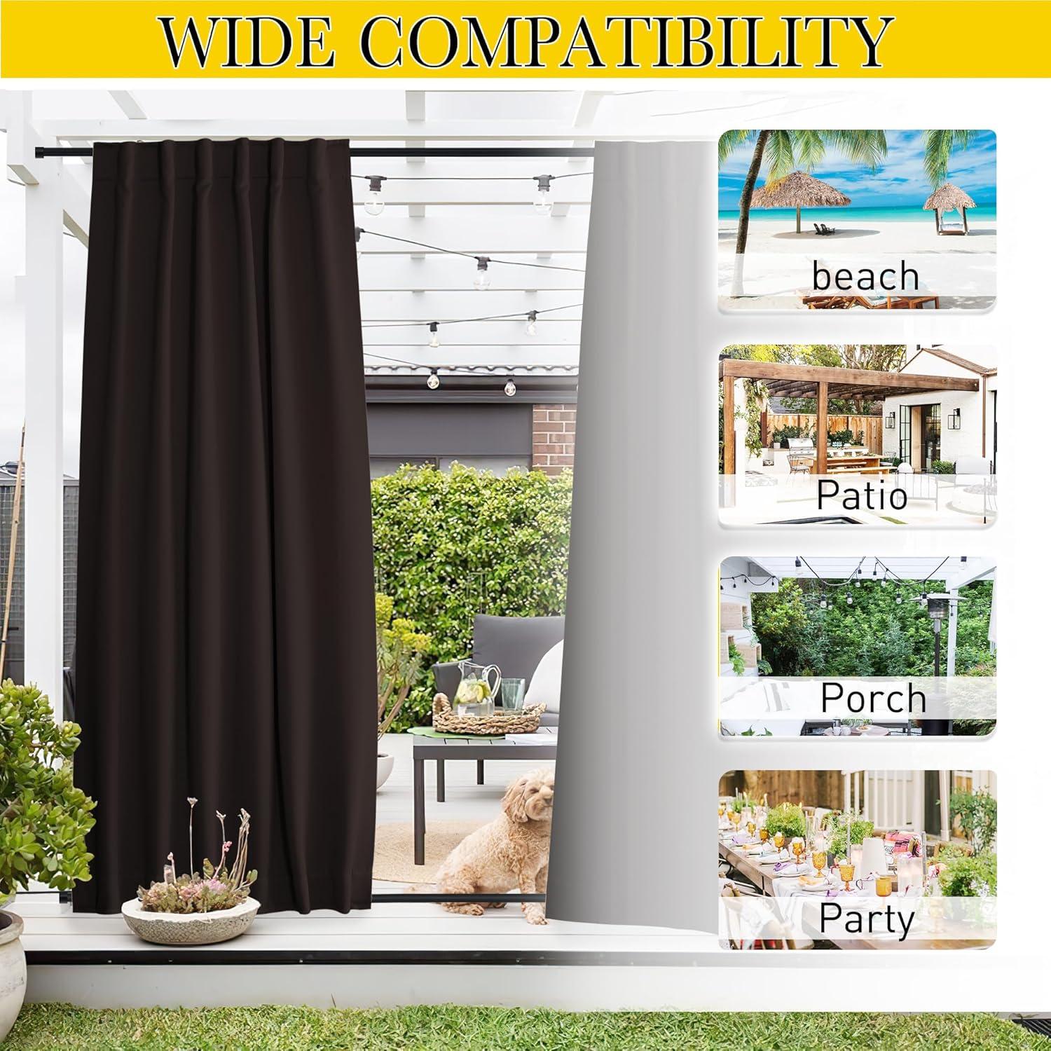 Serve Well: Fit both indoor and outdoor demand, also can serve as shower curtains. These outdoor curtains can change your porch, pool, and patio to an outdoor room with privacy and safety.