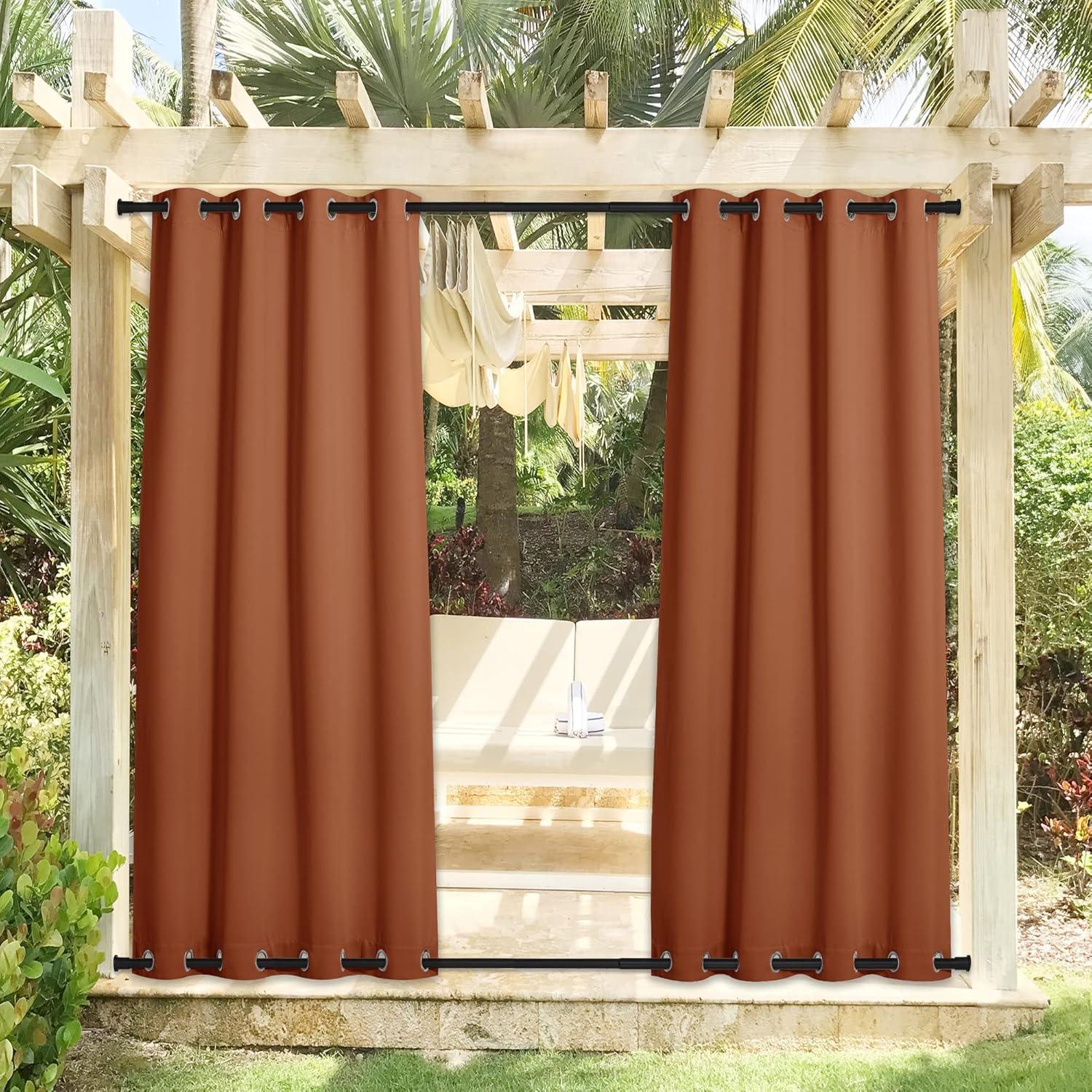 NICETOWN 2 Panels Outdoor Curtains Weighted Sunblock with Rustproof Grommet Top and Bottom, Thermal Insulated Fixed Windproof Blackout Outdoor Curtain Drapes Privacy for Patio, W52 x L95, Grey(Burnt Orange)