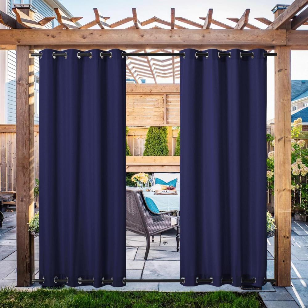 imageNICETOWN 2 Panels Outdoor Curtains Weighted Sunblock with Rustproof Grommet Top and Bottom Thermal Insulated Fixed Windproof Blackout Outdoor Curtain Drapes Privacy for Patio W52 x L95 GreyDark Blue