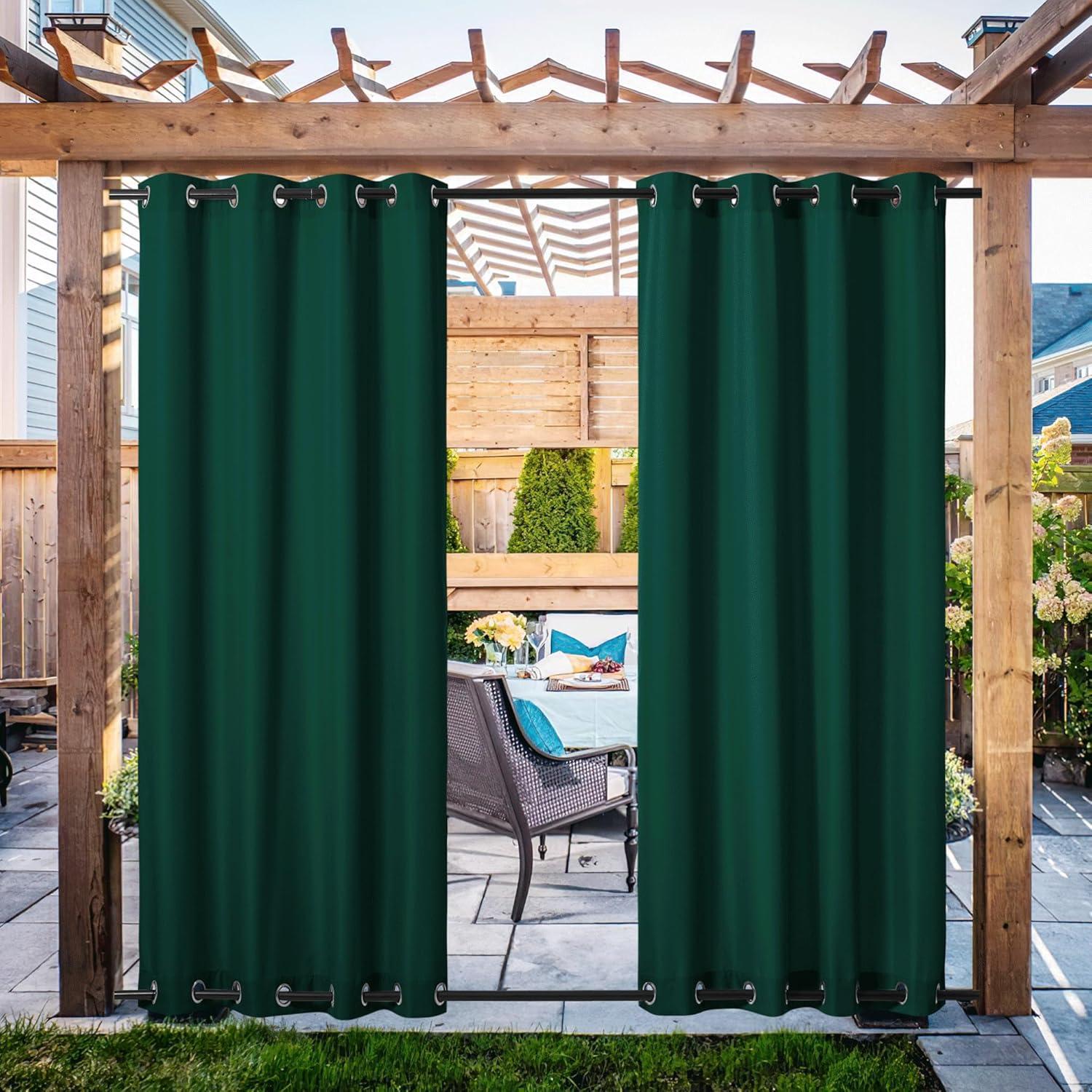 NICETOWN 2 Panels Outdoor Curtains Weighted Sunblock with Rustproof Grommet Top and Bottom, Thermal Insulated Fixed Windproof Blackout Outdoor Curtain Drapes Privacy for Patio, W52 x L95, Grey(Dark Green)