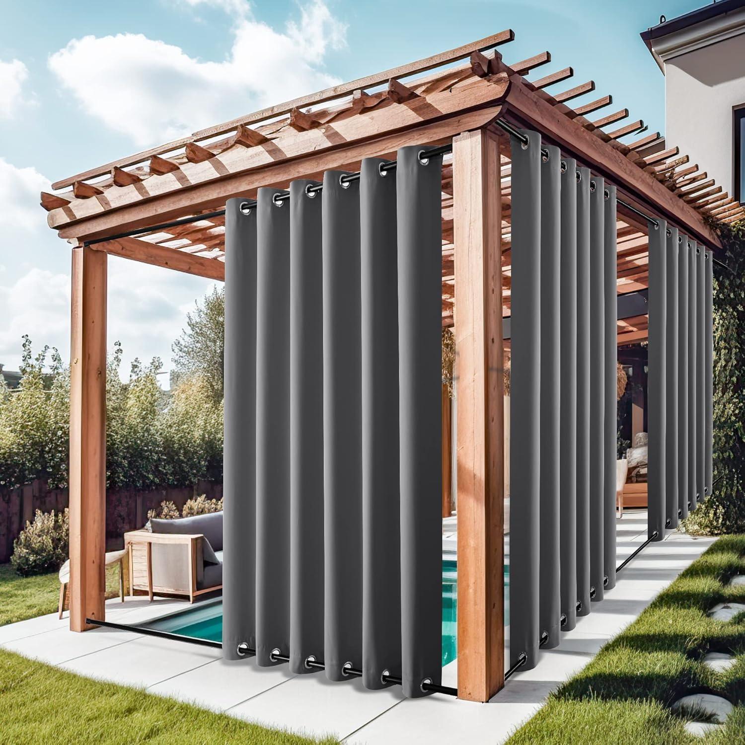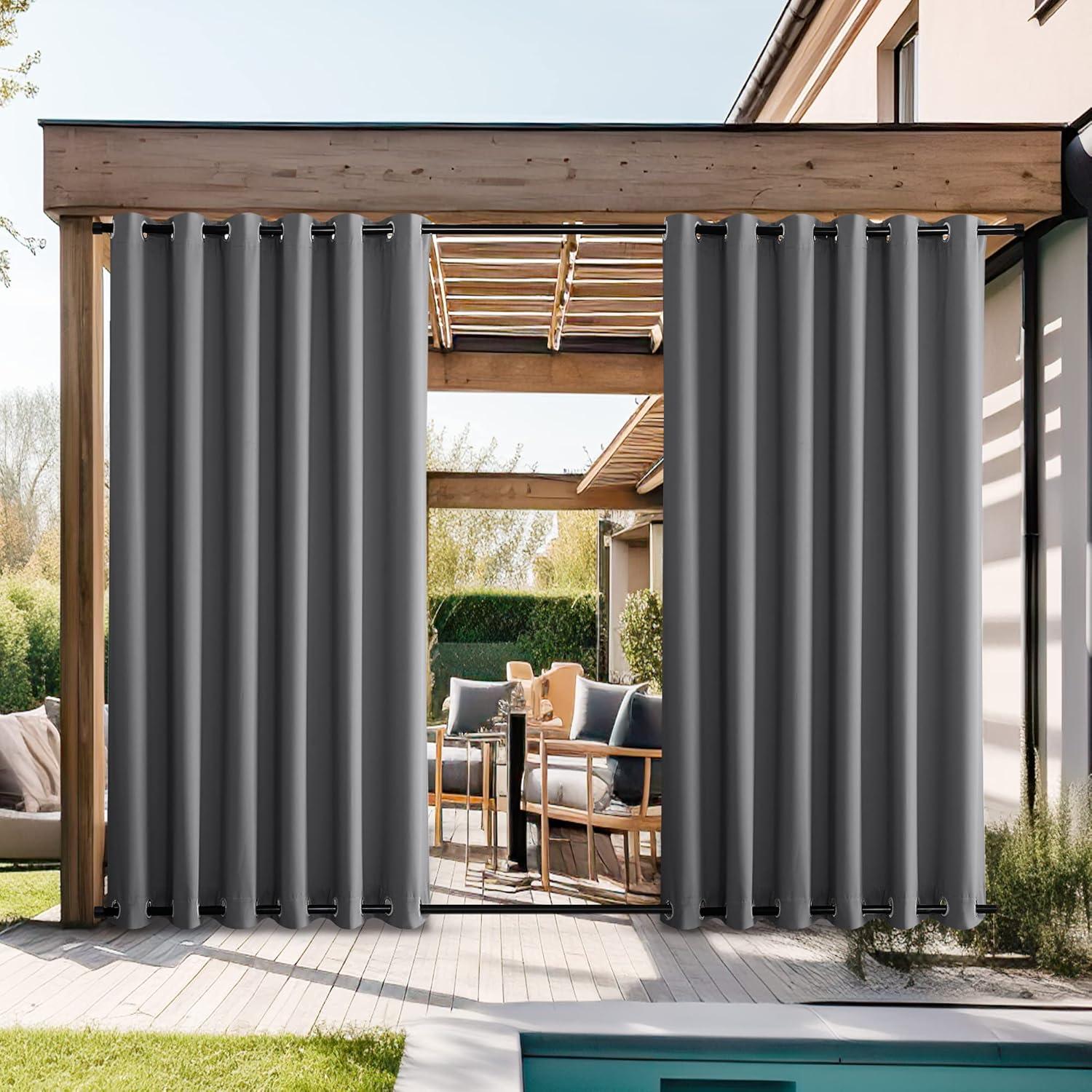 NICETOWN 2 Panels Outdoor Curtains Weighted Sunblock with Rustproof Grommet Top and Bottom, Thermal Insulated Fixed Windproof Blackout Outdoor Curtain Drapes Privacy for Patio, W52 x L95, Grey(Grey)