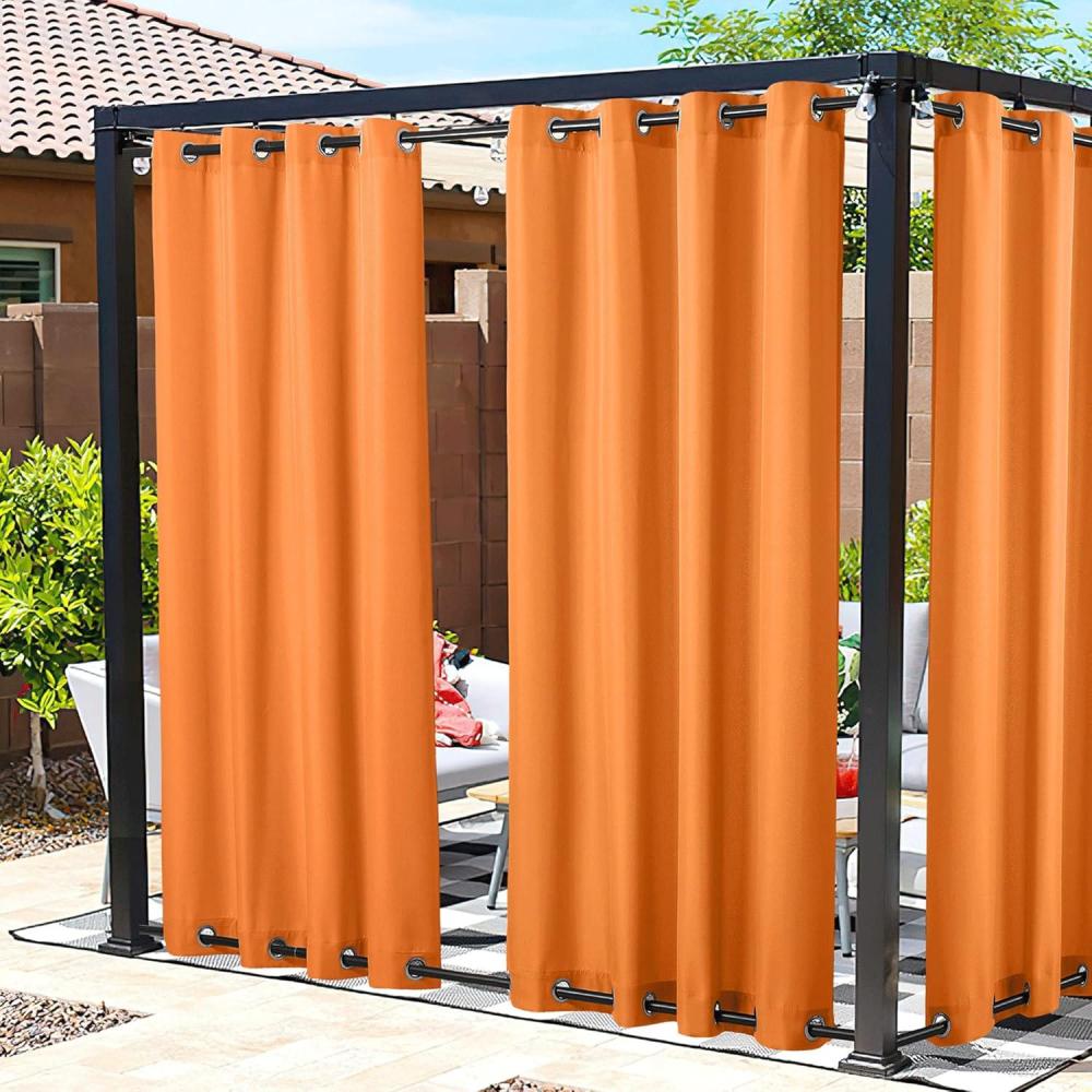NICETOWN 2 Panels Outdoor Curtains Weighted Sunblock with Rustproof Grommet Top and Bottom, Thermal Insulated Fixed Windproof Blackout Outdoor Curtain Drapes Privacy for Patio, W52 x L95, Grey(Orange)