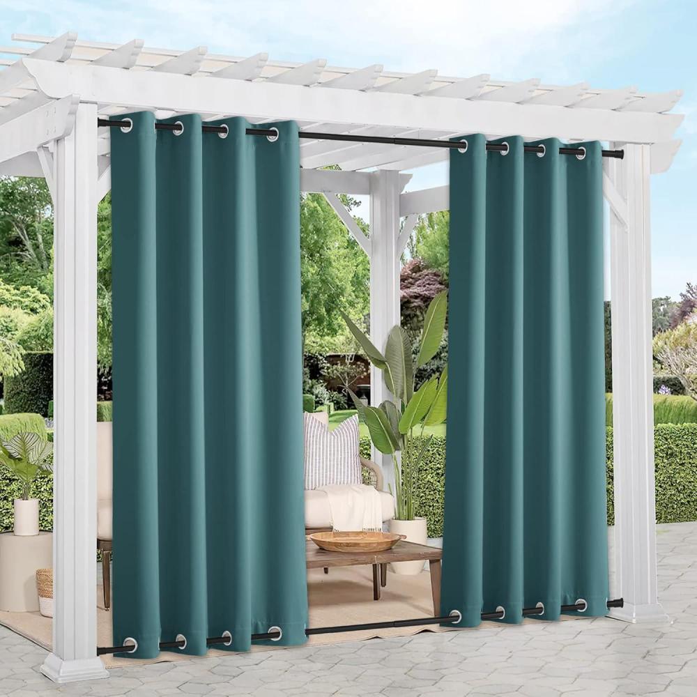 imageNICETOWN 2 Panels Outdoor Curtains Weighted Sunblock with Rustproof Grommet Top and Bottom Thermal Insulated Fixed Windproof Blackout Outdoor Curtain Drapes Privacy for Patio W52 x L95 GreyTeal Blue