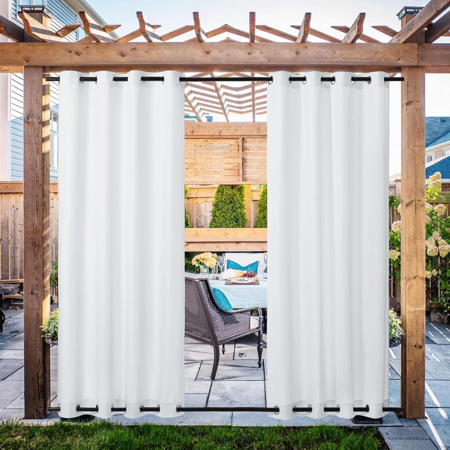 NICETOWN 2 Panels Outdoor Curtains Weighted Sunblock with Rustproof Grommet Top and Bottom, Thermal Insulated Fixed Windproof Blackout Outdoor Curtain Drapes Privacy for Patio, W52 x L95, Grey(White)