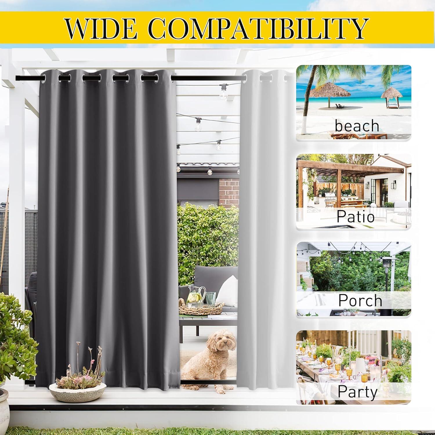 Serve Well: Fit both indoor and outdoor demand, also can serve as shower curtains. These outdoor curtains can change your porch, pool, and patio to an outdoor room with privacy and safety.