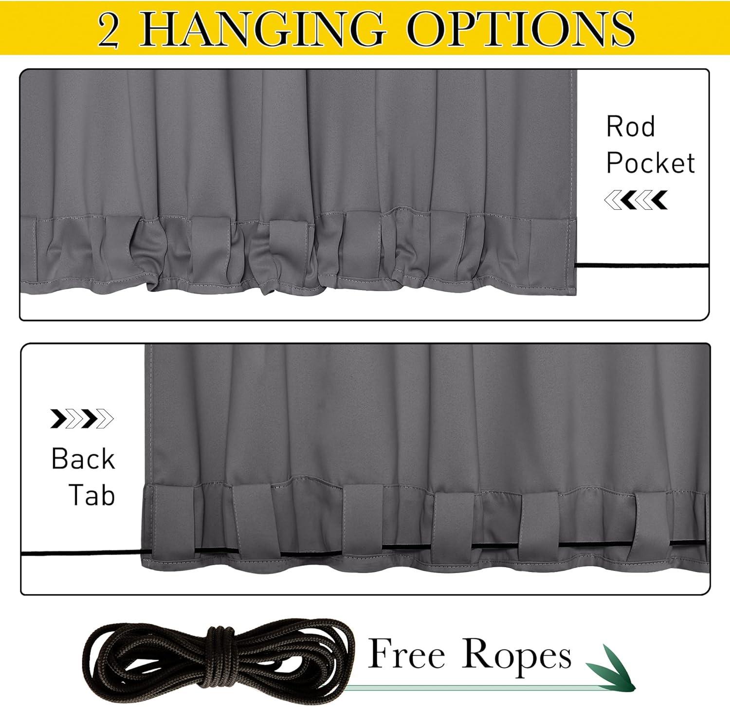 Ready-Made: The package includes 2 panels of weighted blackout cabana curtains and a piece of rope for fixing. The Rustproof grommets & Back Tab at the top and bottom fit standard rods up to 1.6″ in diameter.