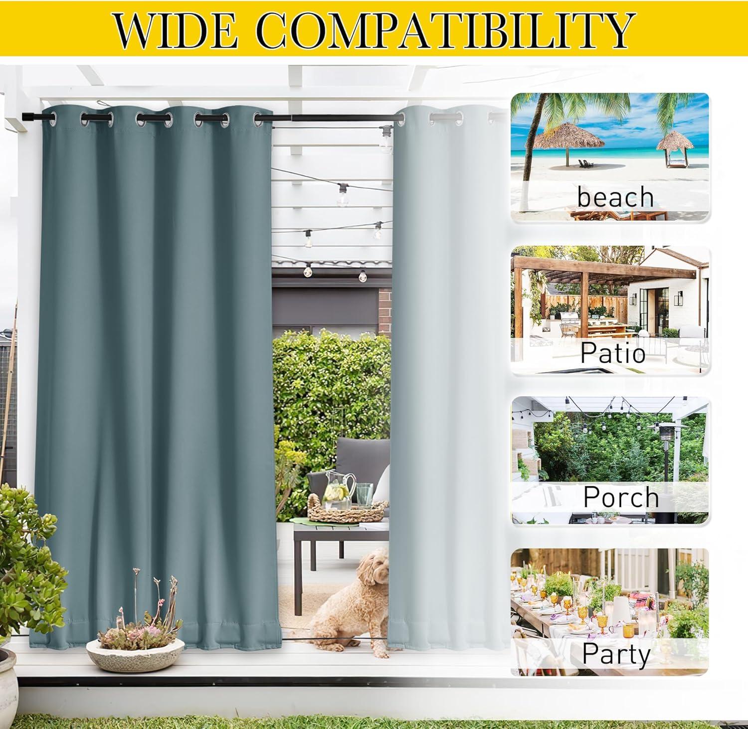 Serve Well: Fit both indoor and outdoor demand, also can serve as shower curtains. These outdoor curtains can change your porch, pool, and patio to an outdoor room with privacy and safety.