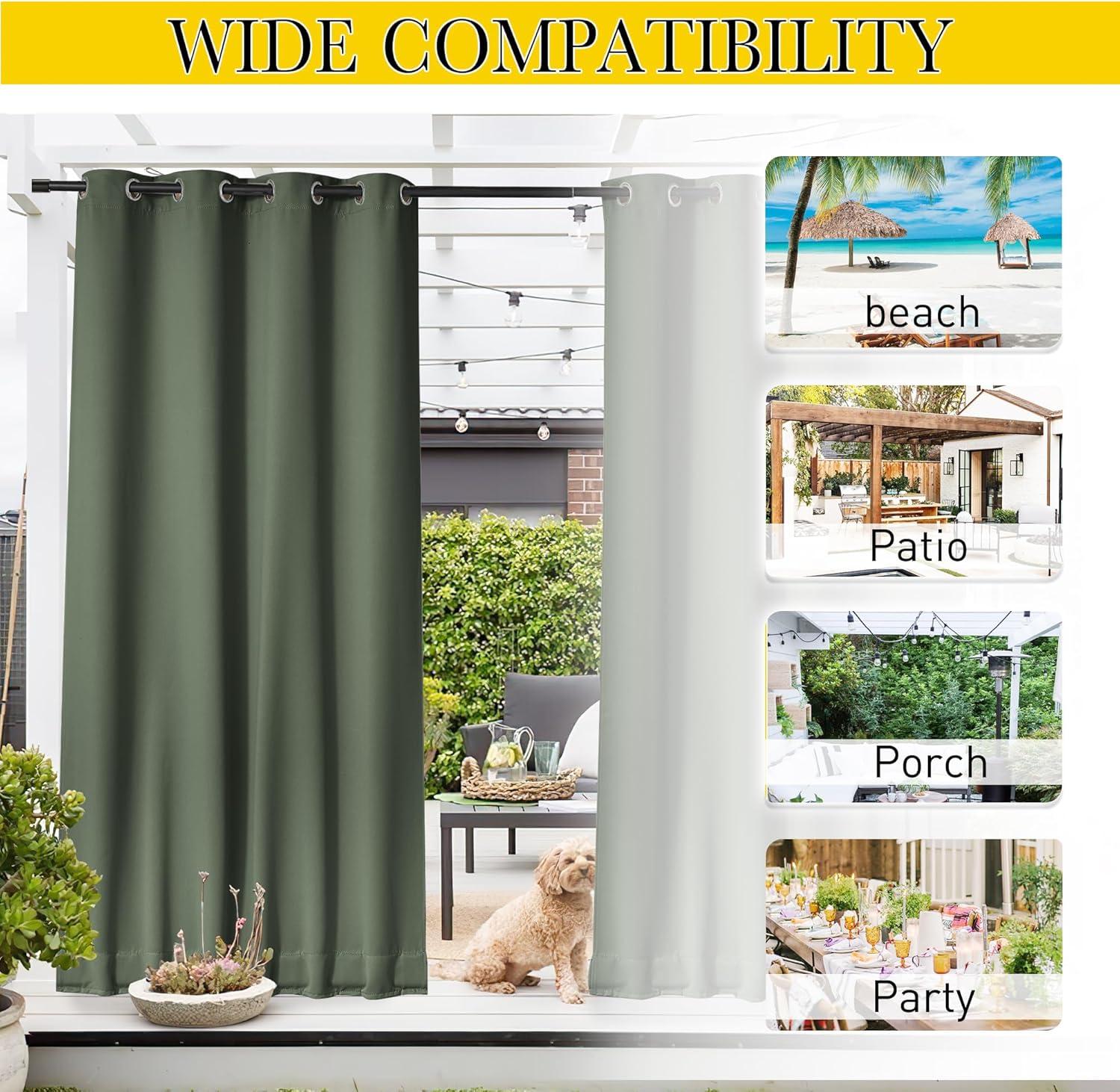 Serve Well: Fit both indoor and outdoor demand, also can serve as shower curtains. These outdoor curtains can change your porch, pool, and patio to an outdoor room with privacy and safety.