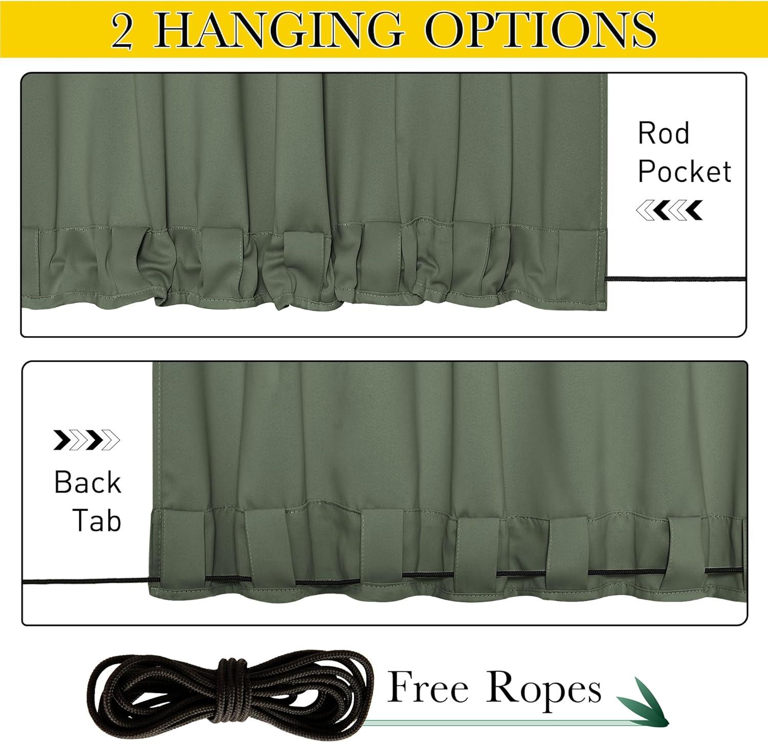 Ready-Made: The package includes 2 panels of weighted blackout cabana curtains and a piece of rope for fixing. The Rustproof grommets & Back Tab at the top and bottom fit standard rods up to 1.6″ in diameter.