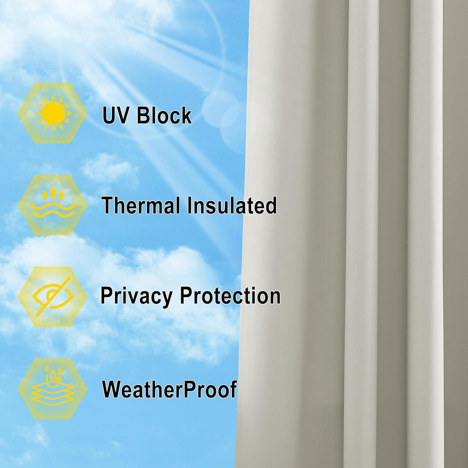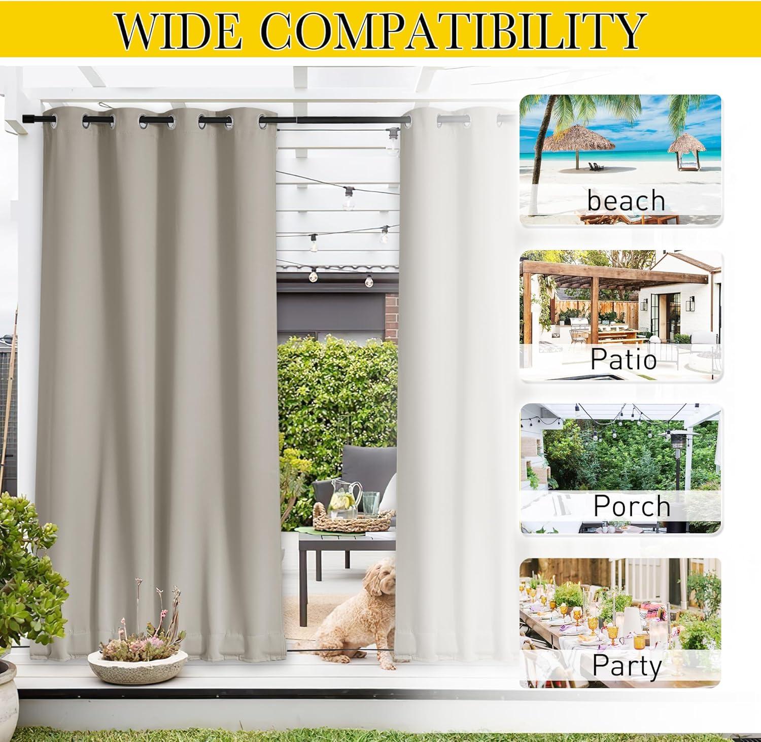 Serve Well: Fit both indoor and outdoor demand, also can serve as shower curtains. These outdoor curtains can change your porch, pool, and patio to an outdoor room with privacy and safety.