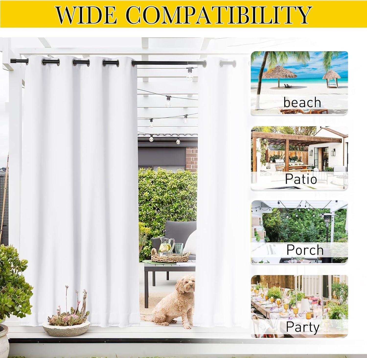 Serve Well: Fit both indoor and outdoor demand, also can serve as shower curtains. These outdoor curtains can change your porch, pool, and patio to an outdoor room with privacy and safety.