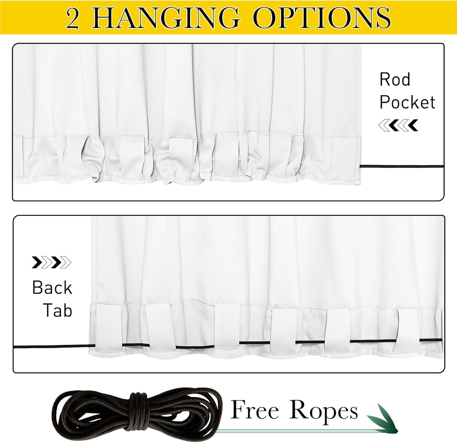 Ready-Made: The package includes 2 panels of weighted blackout cabana curtains and a piece of rope for fixing. The Rustproof grommets & Back Tab at the top and bottom fit standard rods up to 1.6″ in diameter.