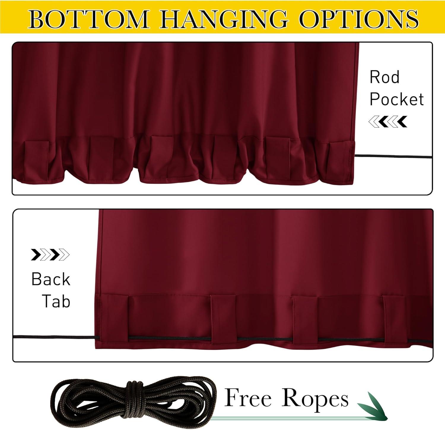 Fixable Design: Unique weighted cabana blackout curtains design, grommets and back tab at top and bottom make the curtain weighted and fixed to avoid blowing and flapping for providing you with much privacy while keeping sun or rain out.