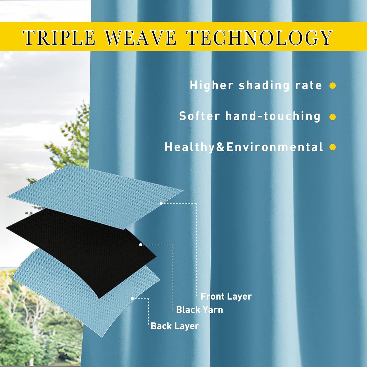 Nice Fabric: The material of these weighted blackout cabana curtains adopts a triple weave and special waterproof technology not only can block out sunlight but also withstand high wind to keep warm in winter.