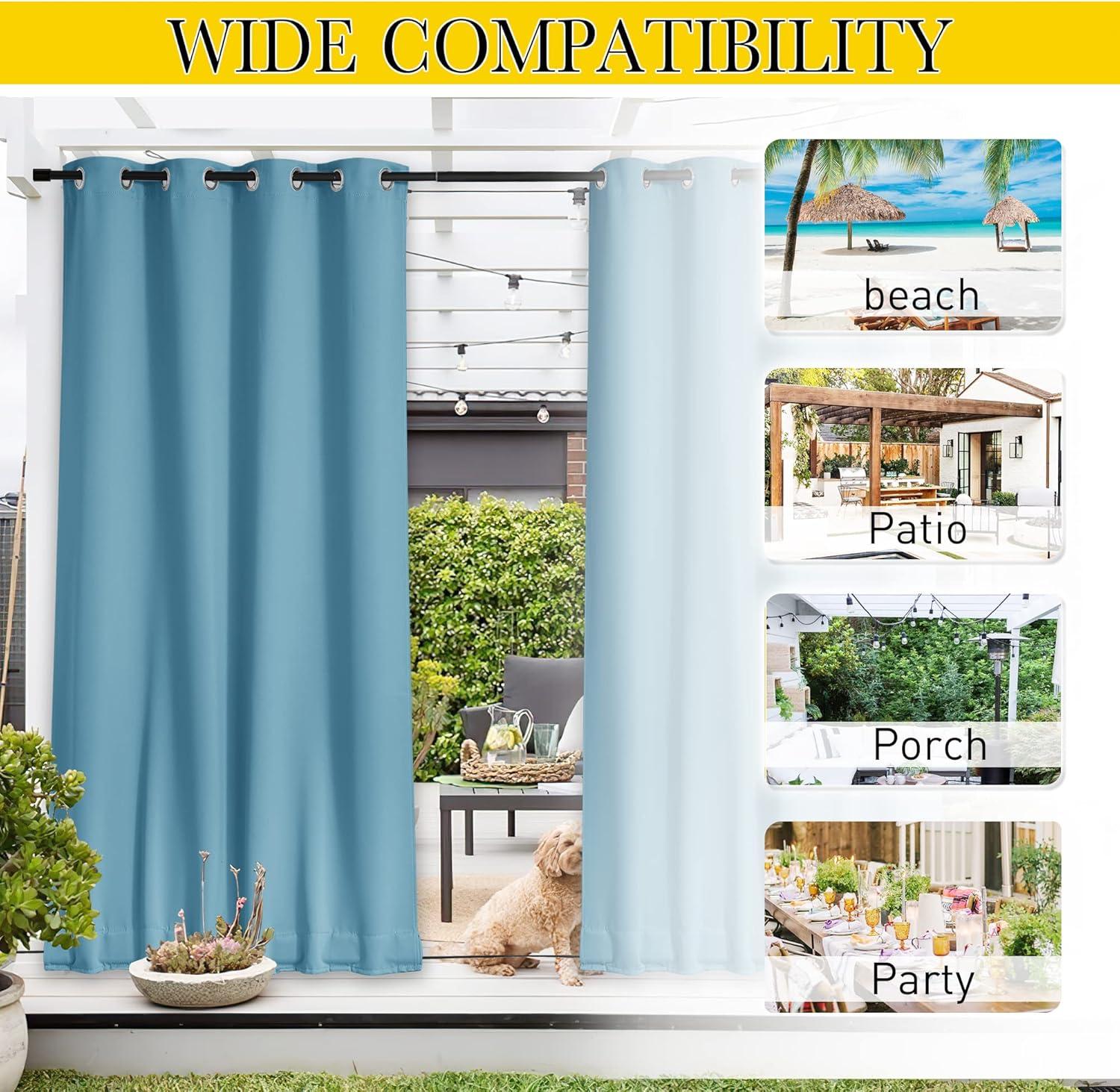 Serve Well: Fit both indoor and outdoor demand, also can serve as shower curtains. These outdoor curtains can change your porch, pool, and patio to an outdoor room with privacy and safety.