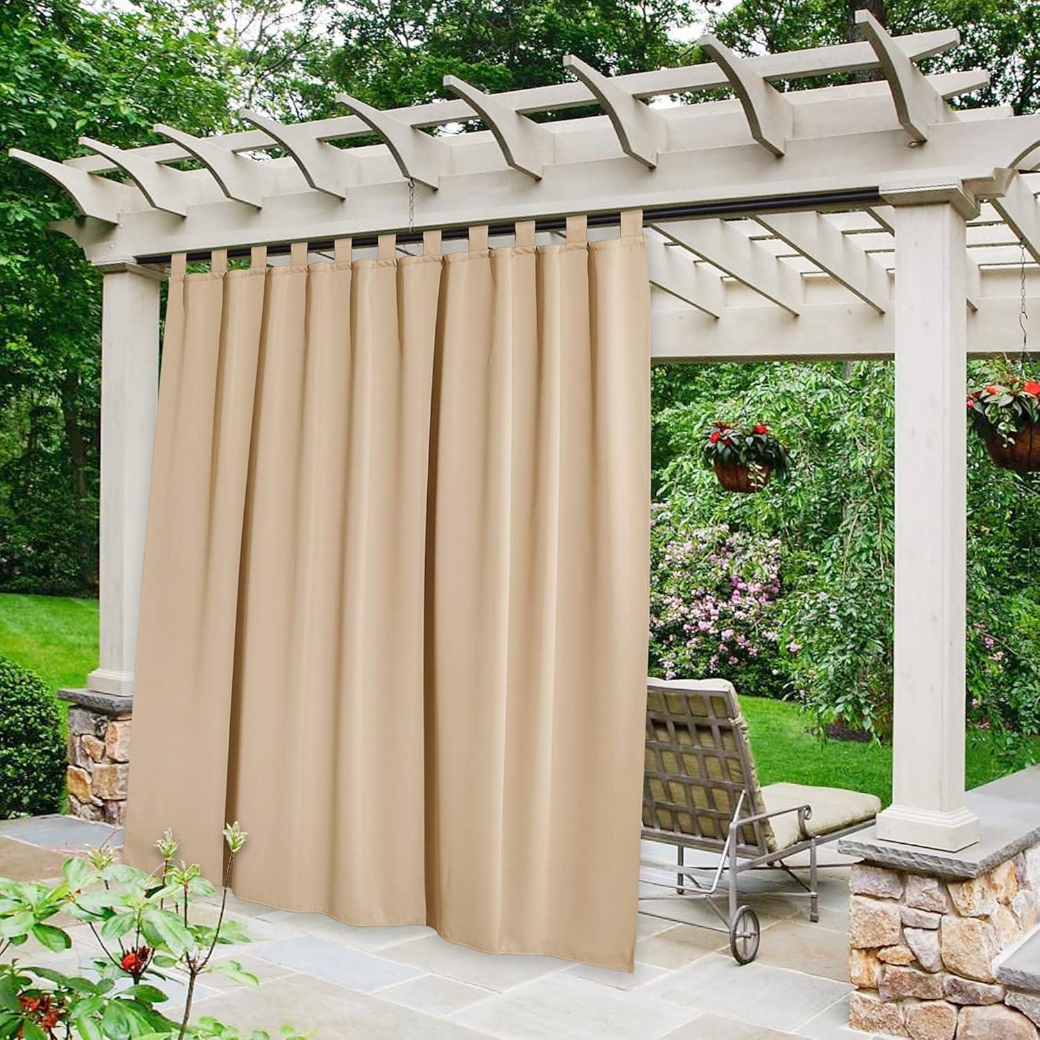 imageNICETOWN 2 Pieces Outdoor Curtainss for Patio Waterproof 95 inch Length Sticky Tab Top Thermal Insulated Blackout Window Treatment Dividers Protect Privacy for CabanaArbor W52 x L95 Silver GreyBiscotti Beige