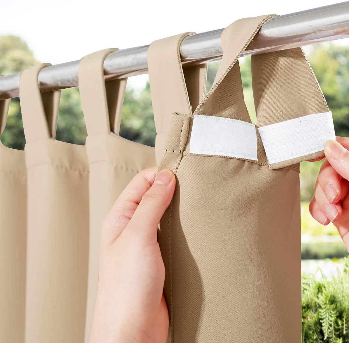 DETACHABLE TAB TOP: NICETOWN adopts self-stick tab top to make it detachable so that you needn't take down the rods while hanging these outdoor curtains and you won't bother on grommet rust.
