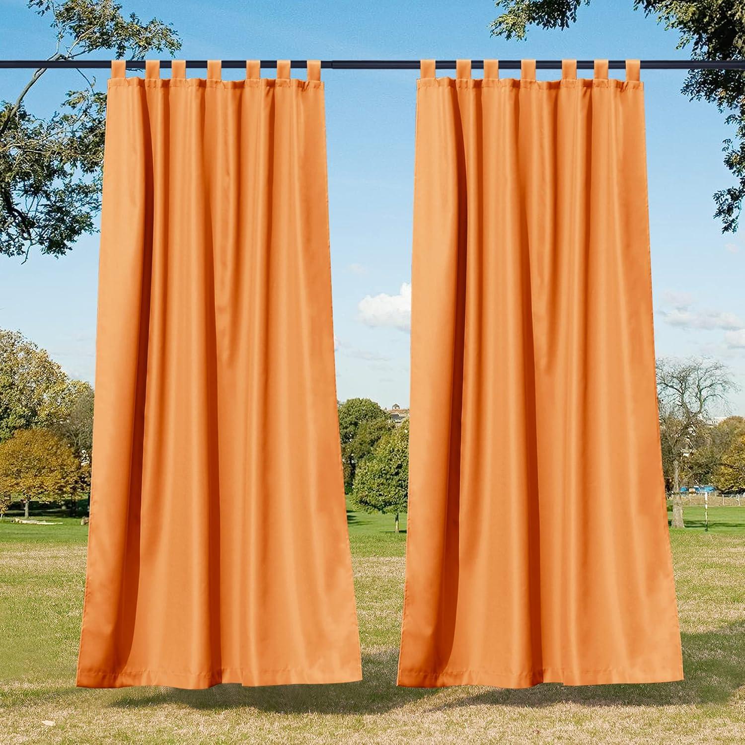 imageNICETOWN 2 Pieces Outdoor Curtainss for Patio Waterproof 95 inch Length Sticky Tab Top Thermal Insulated Blackout Window Treatment Dividers Protect Privacy for CabanaArbor W52 x L95 Silver GreyOrange