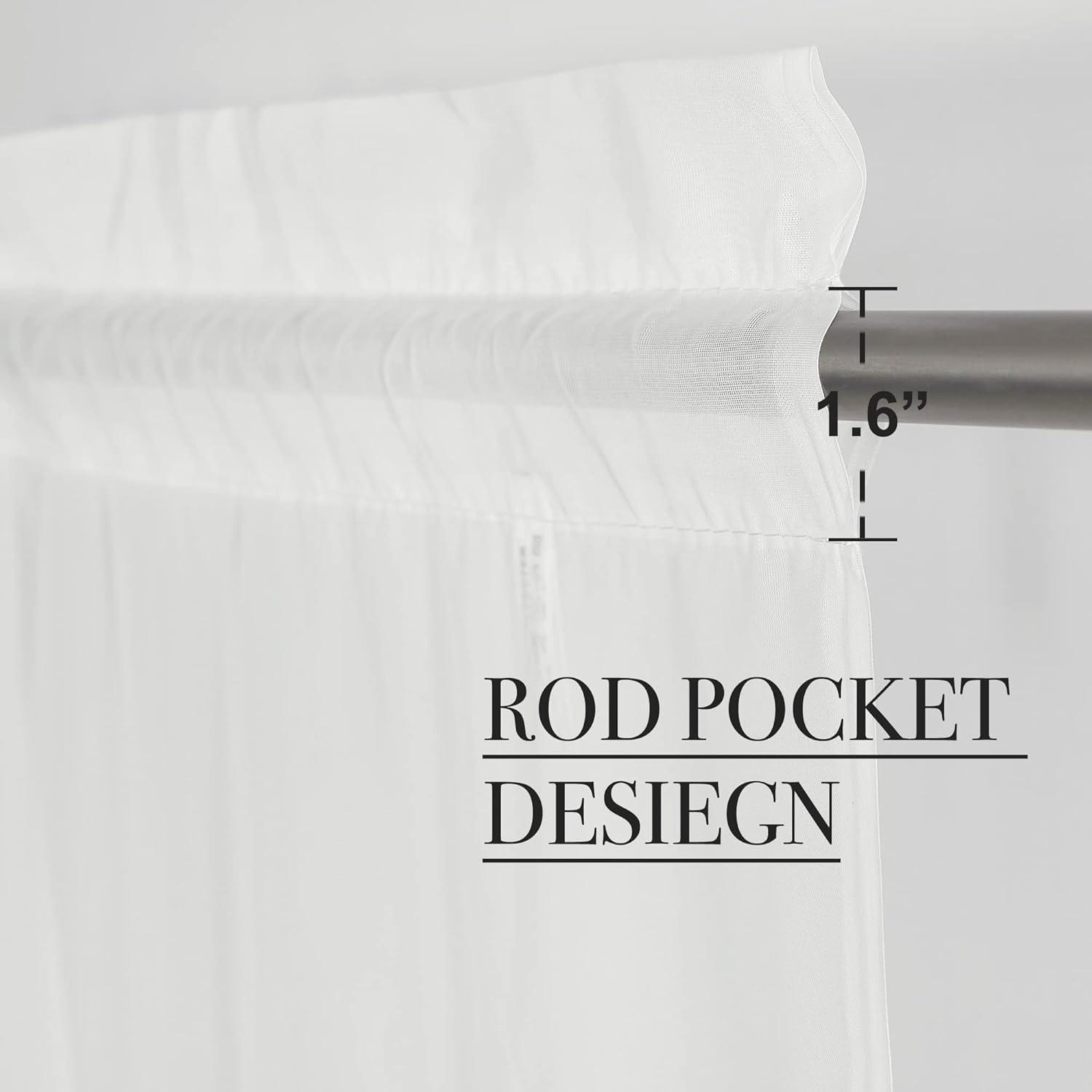 READY MADE: Sheer Curtains constructed with a sewn-in rod pocket(2″ Diameter) are sold as 4 panels, each panel measures 60″ wide. As a general rule, for proper fullness panels should measure 2-3 times the width of your window/opening.