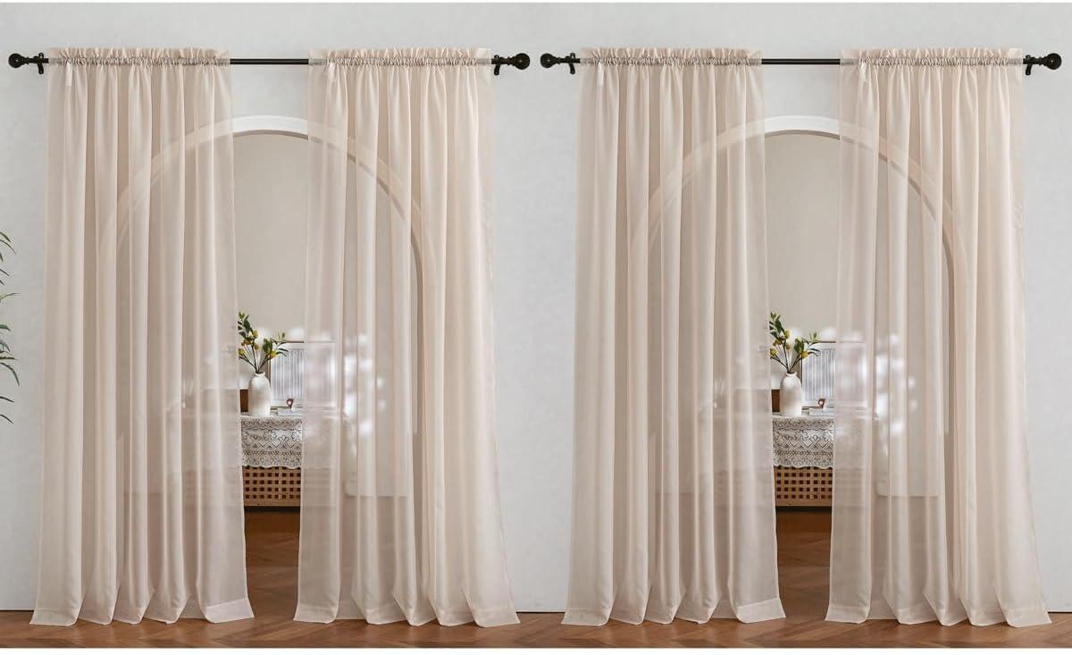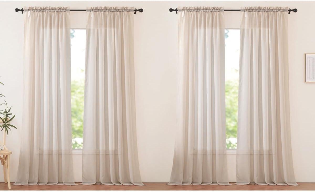 WIDE COMPATIBILITY: NICETOWN voile sheer curtains are perfect for the living room, bedroom, hall, villa, patio door, and princess room. The panels are also suitable for casual, modern and country style.