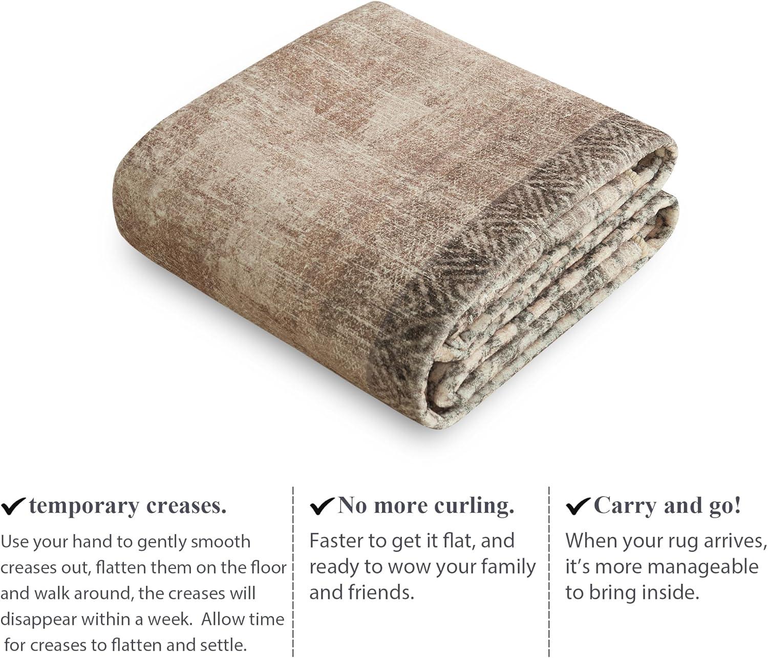 NICETOWN 8×10 Ultra-Thin Brown Oriental Rug for Bedroom, Tumble Washable Area Rugs 8×10, Boho Non-Slip Vintage Living Room Rugs, Oriental Carpet Entrance for Kitchen, Laundry, Bathroom, Bedroom(Brown)