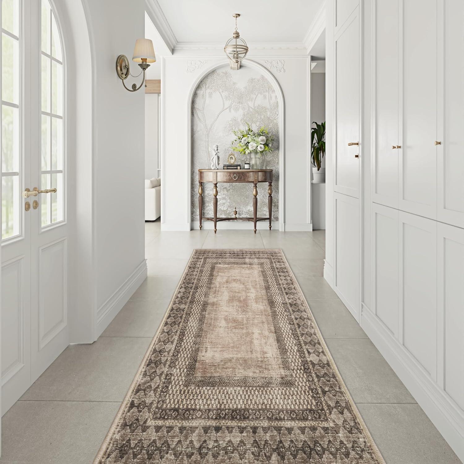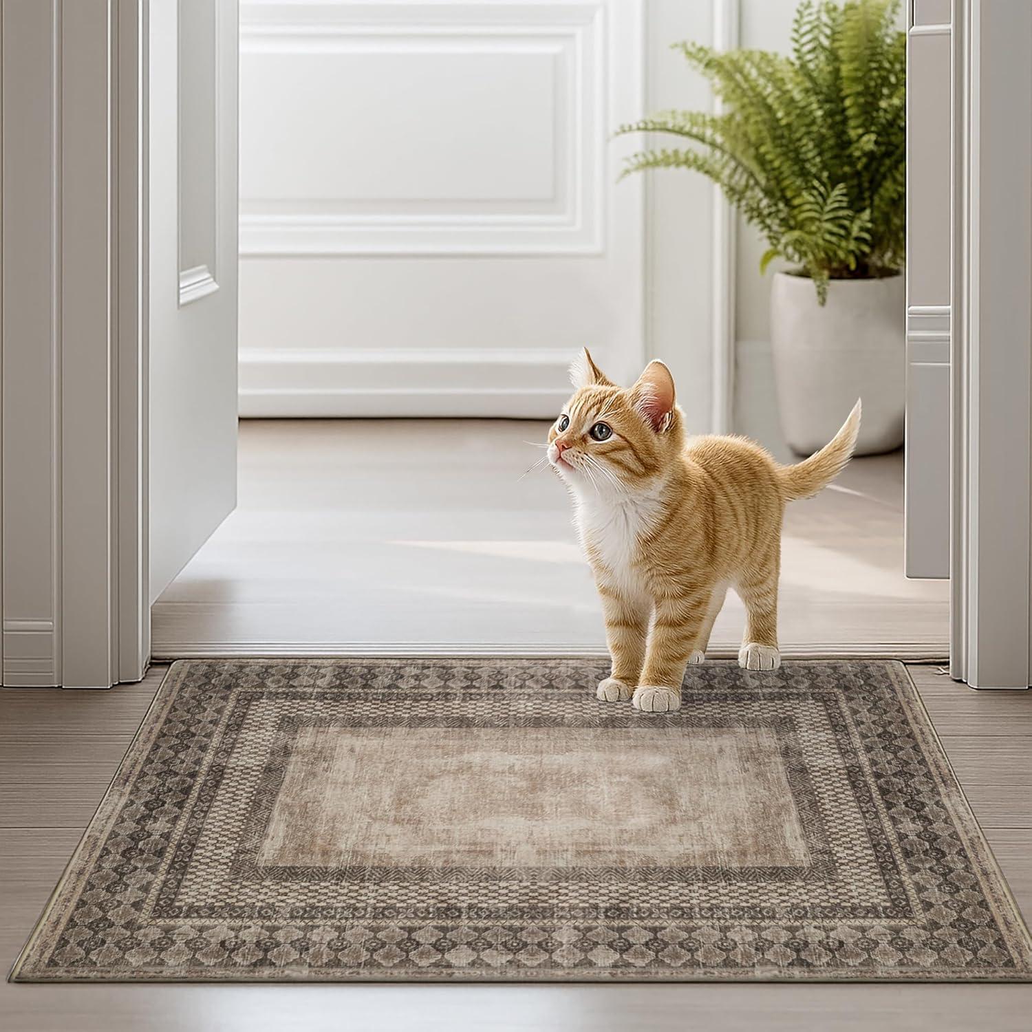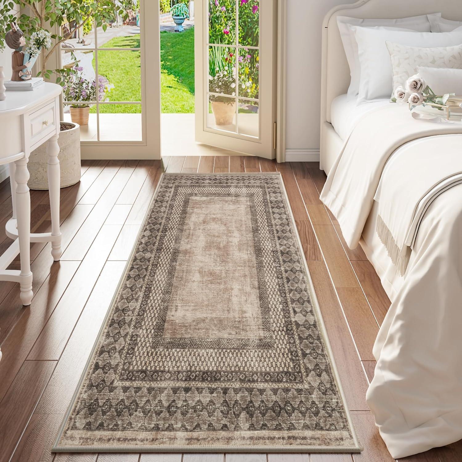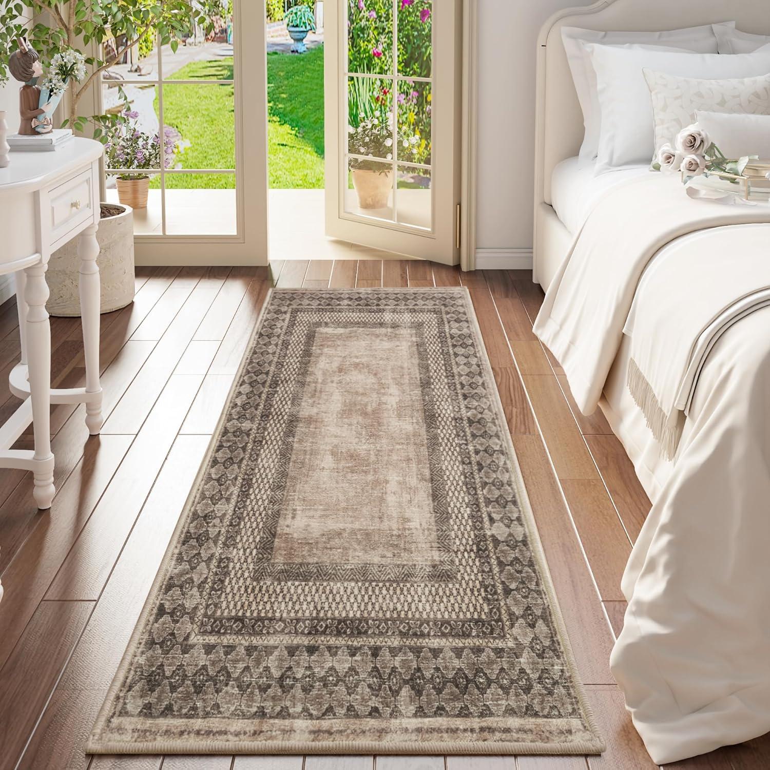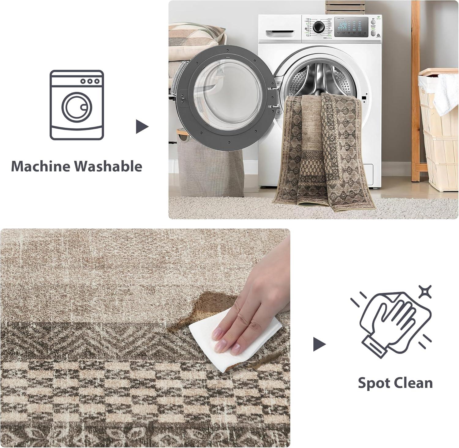 NICETOWN 8x10 Ultra-Thin Brown Oriental Rug for Bedroom, Tumble Washable Area Rugs 8x10, Boho Non-Slip Vintage Living Room Rugs, Oriental Carpet Entrance for Kitchen, Laundry, Bathroom, Bedroom(Brown)