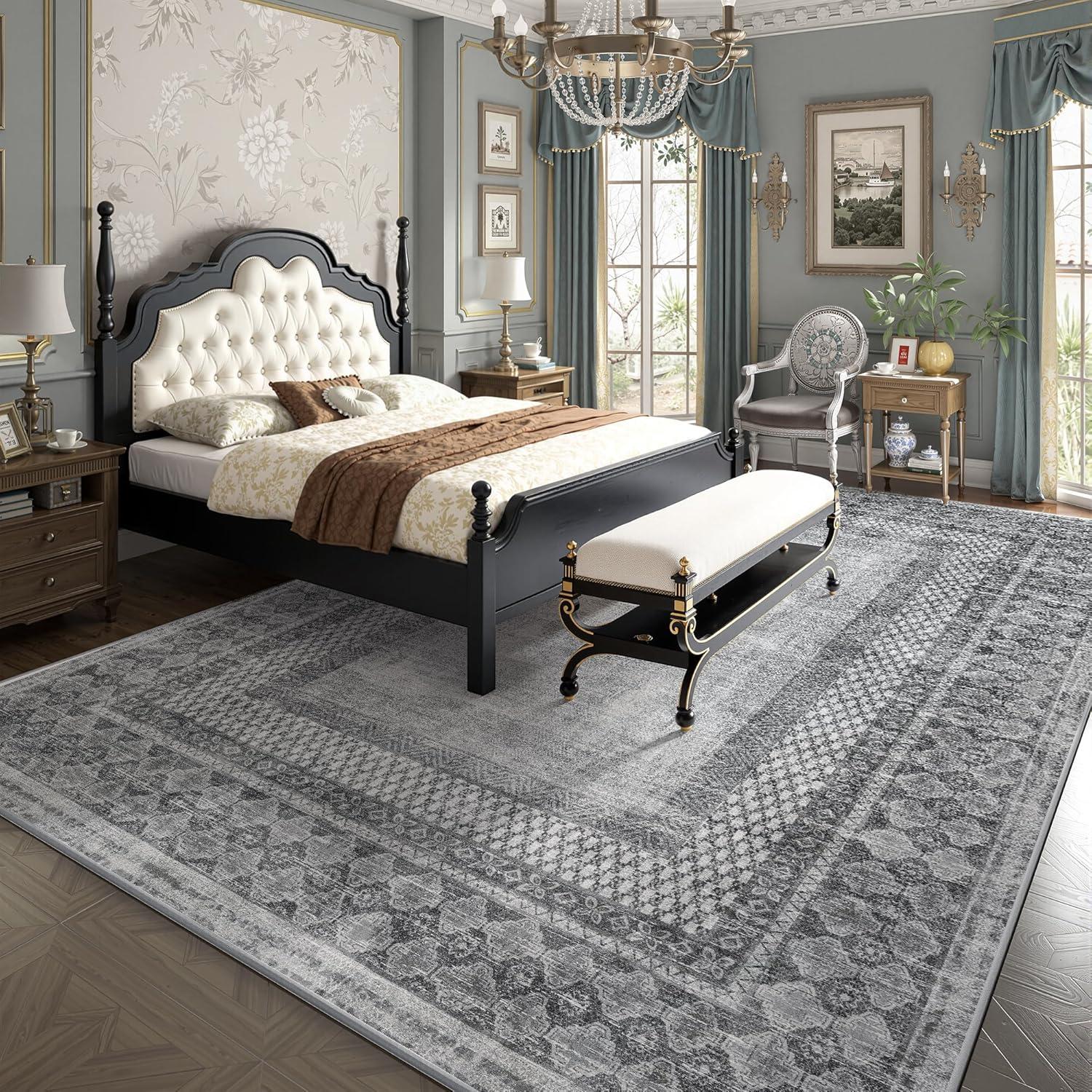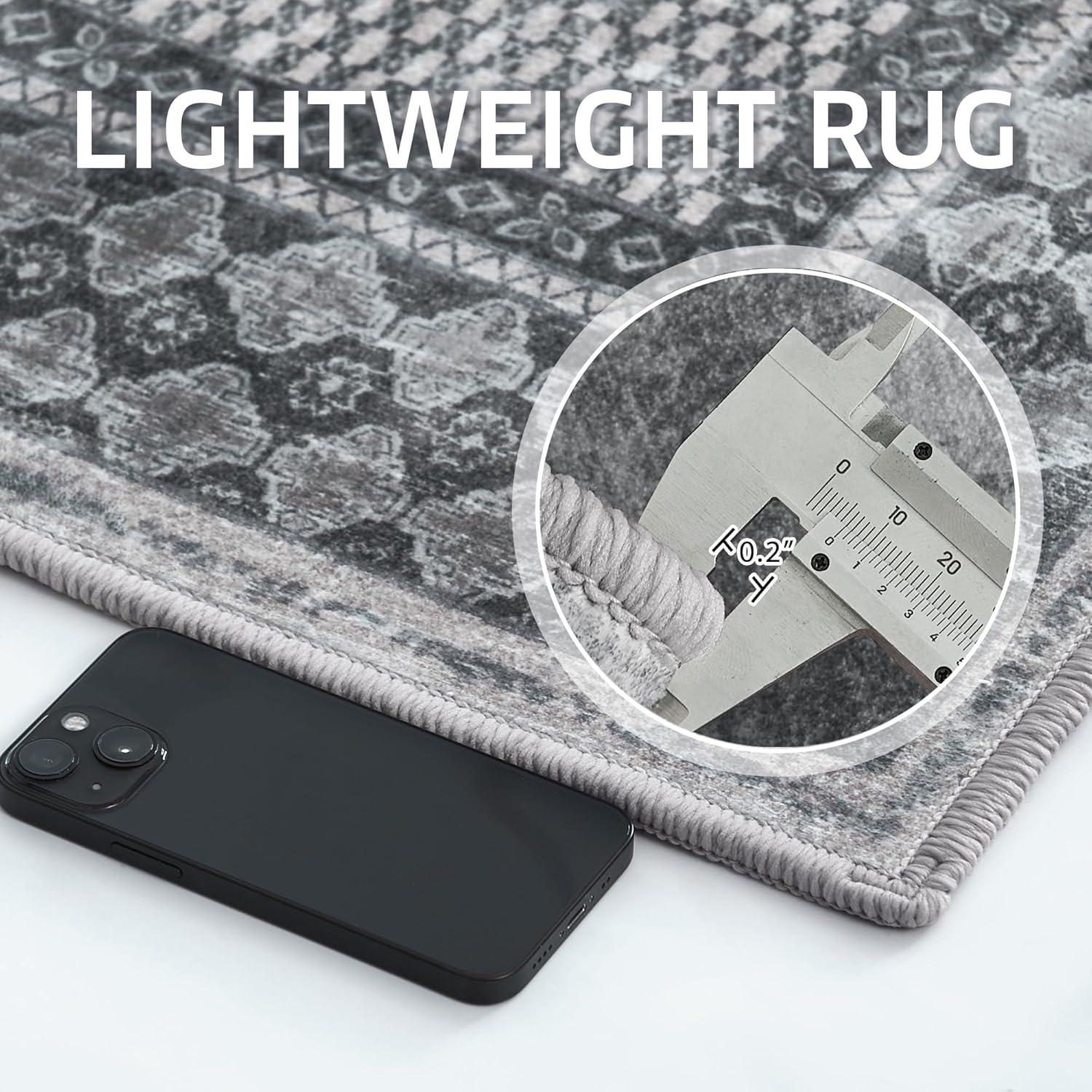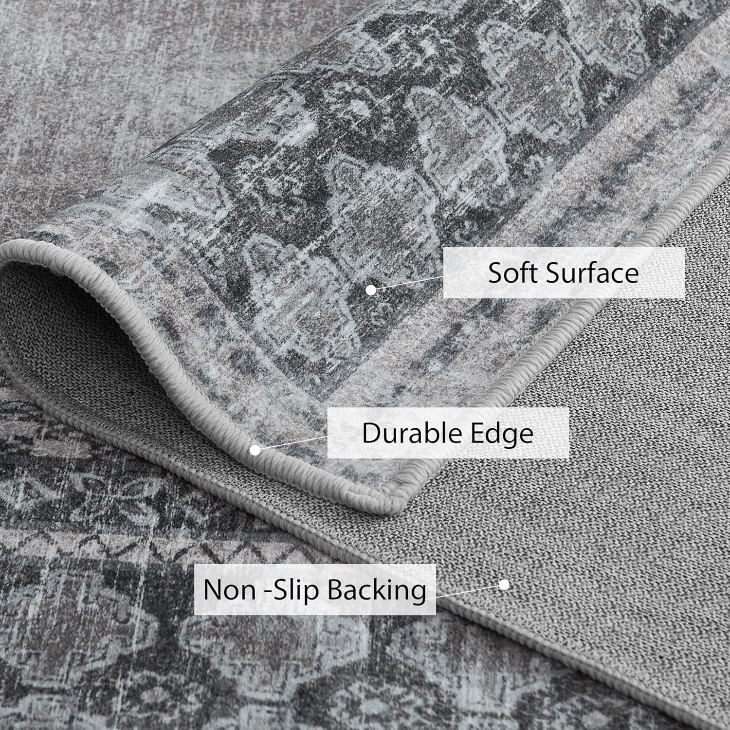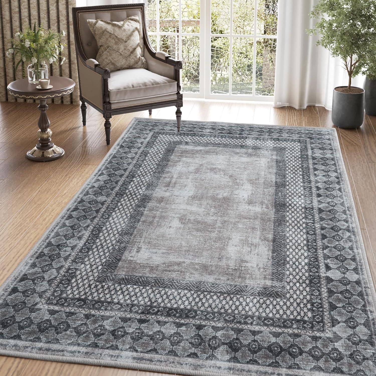 NICETOWN 8x10 Ultra-Thin Brown Oriental Rug for Bedroom, Tumble Washable Area Rugs 8x10, Boho Non-Slip Vintage Living Room Rugs, Oriental Carpet Entrance for Kitchen, Laundry, Bathroom, Bedroom(Grey)