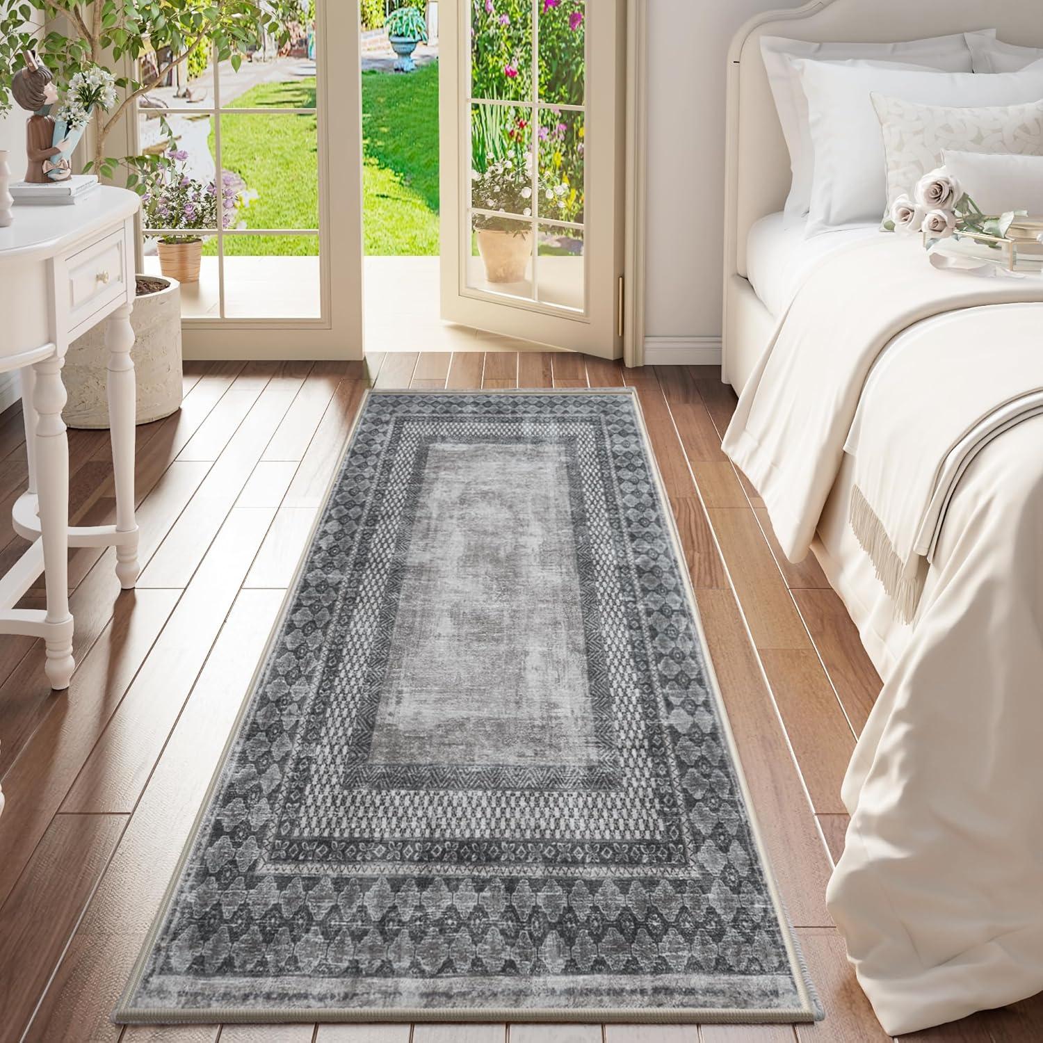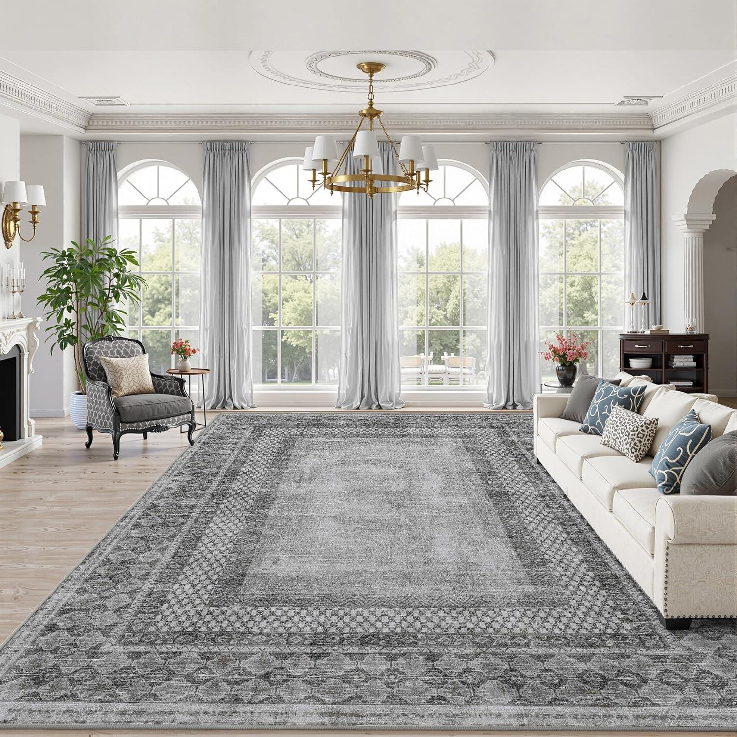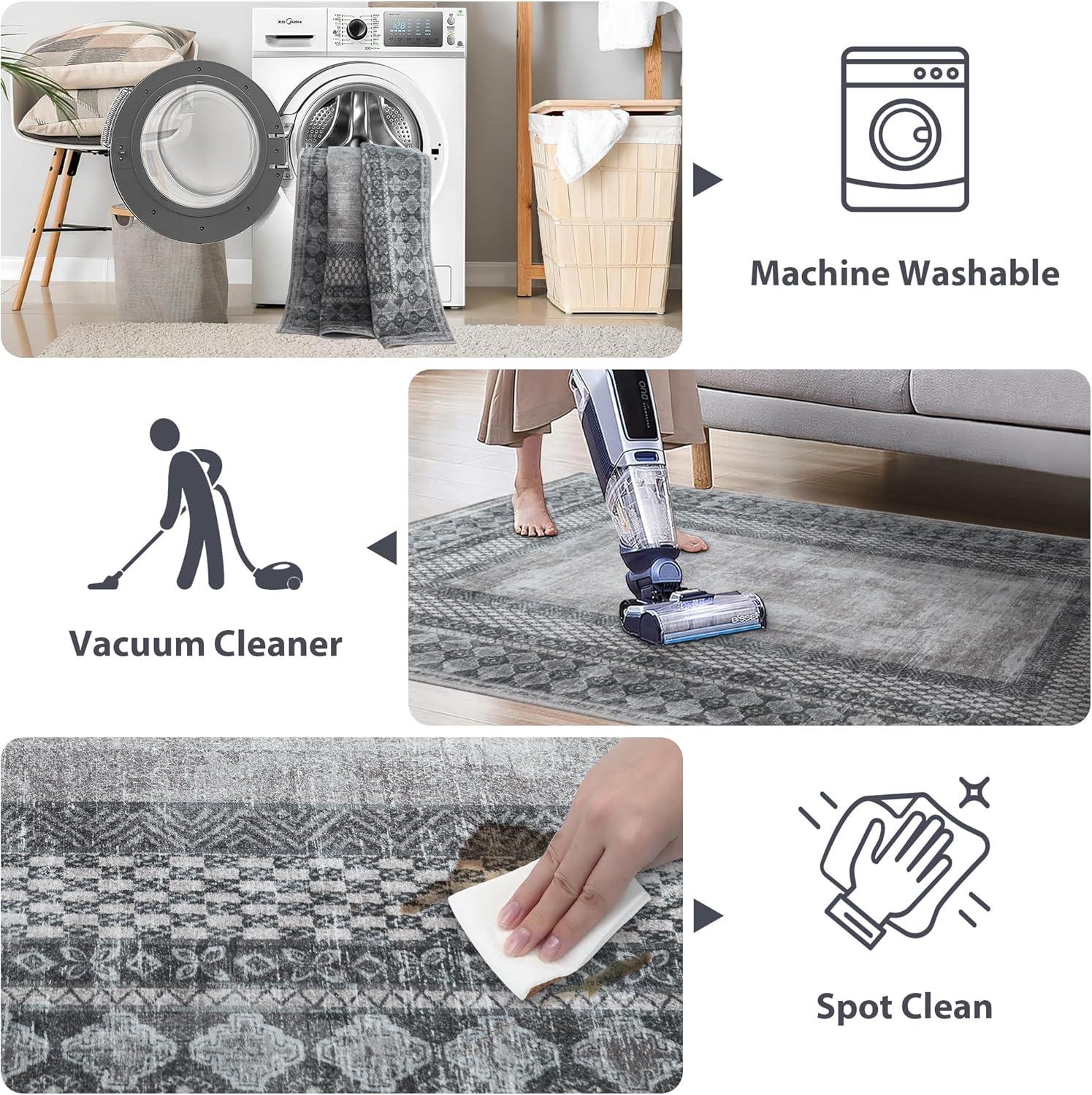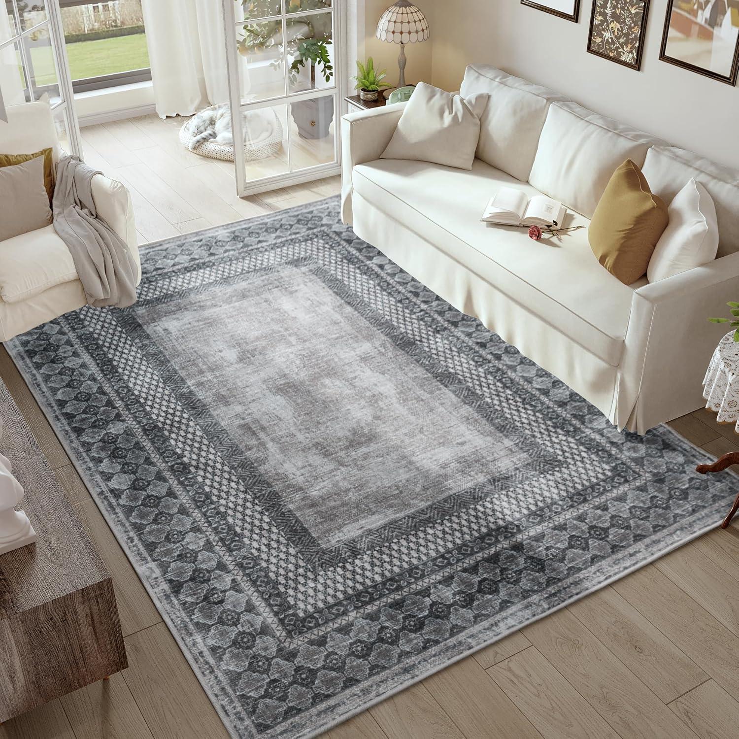 NICETOWN 8x10 Ultra-Thin Brown Oriental Rug for Bedroom, Tumble Washable Area Rugs 8x10, Boho Non-Slip Vintage Living Room Rugs, Oriental Carpet Entrance for Kitchen, Laundry, Bathroom, Bedroom(Grey)