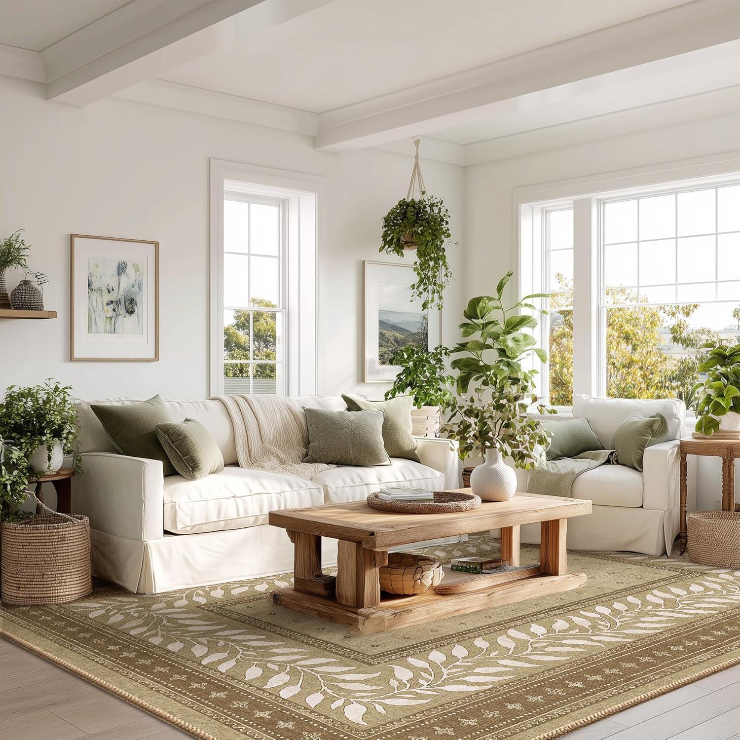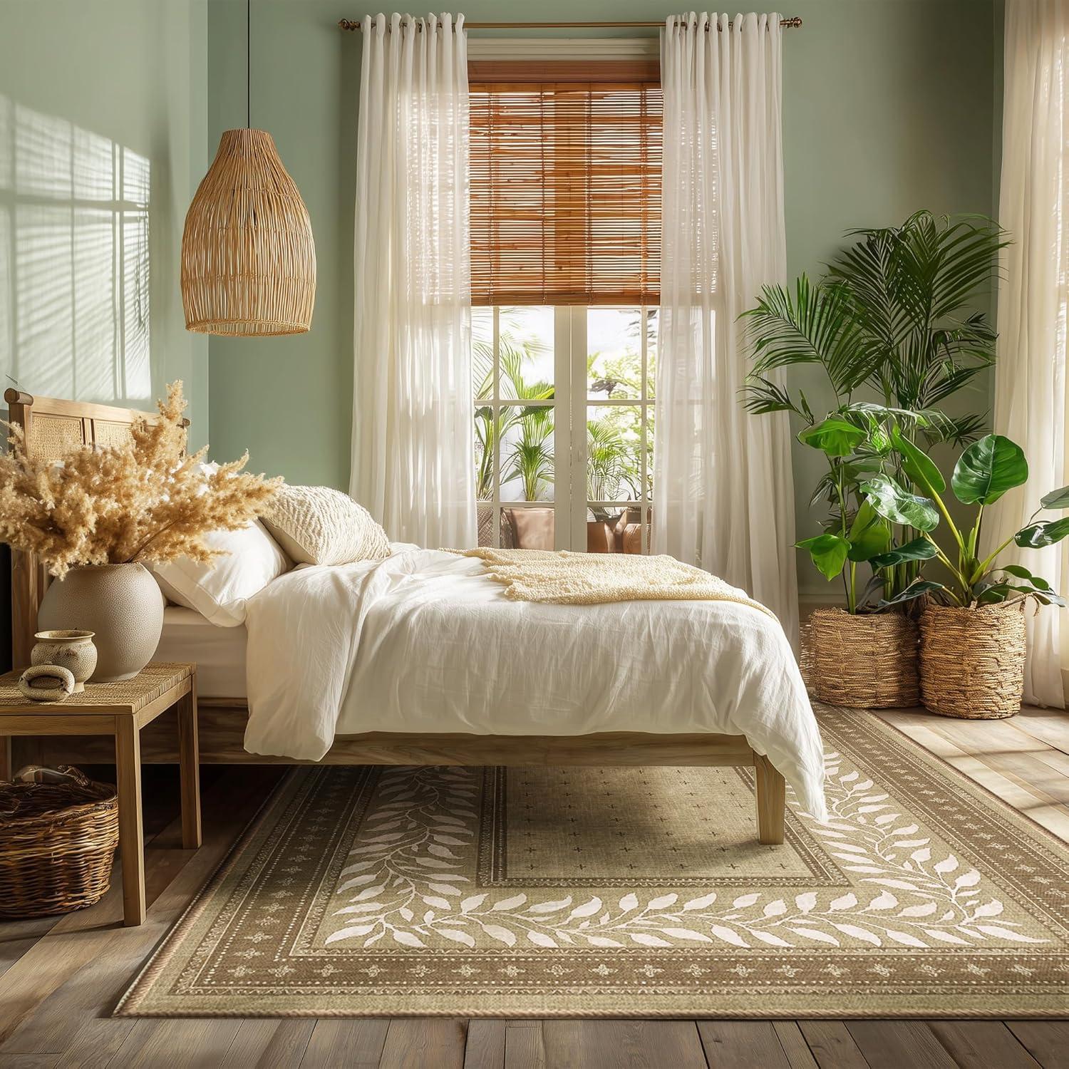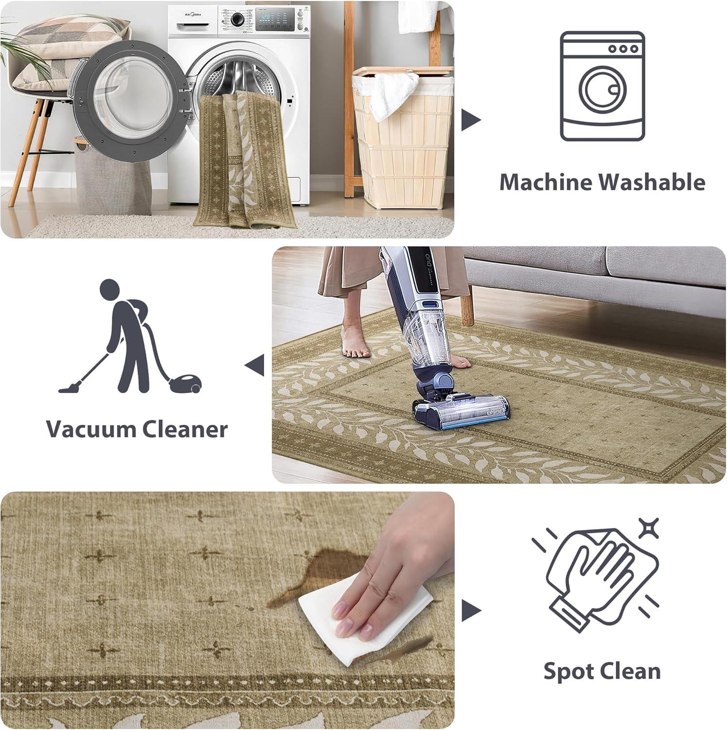 NICETOWN 8×10 Ultra-Thin Brown Oriental Rug for Bedroom, Tumble Washable Area Rugs 8×10, Boho Non-Slip Vintage Living Room Rugs, Oriental Carpet Entrance for Kitchen, Laundry, Bathroom, Bedroom(Natural)