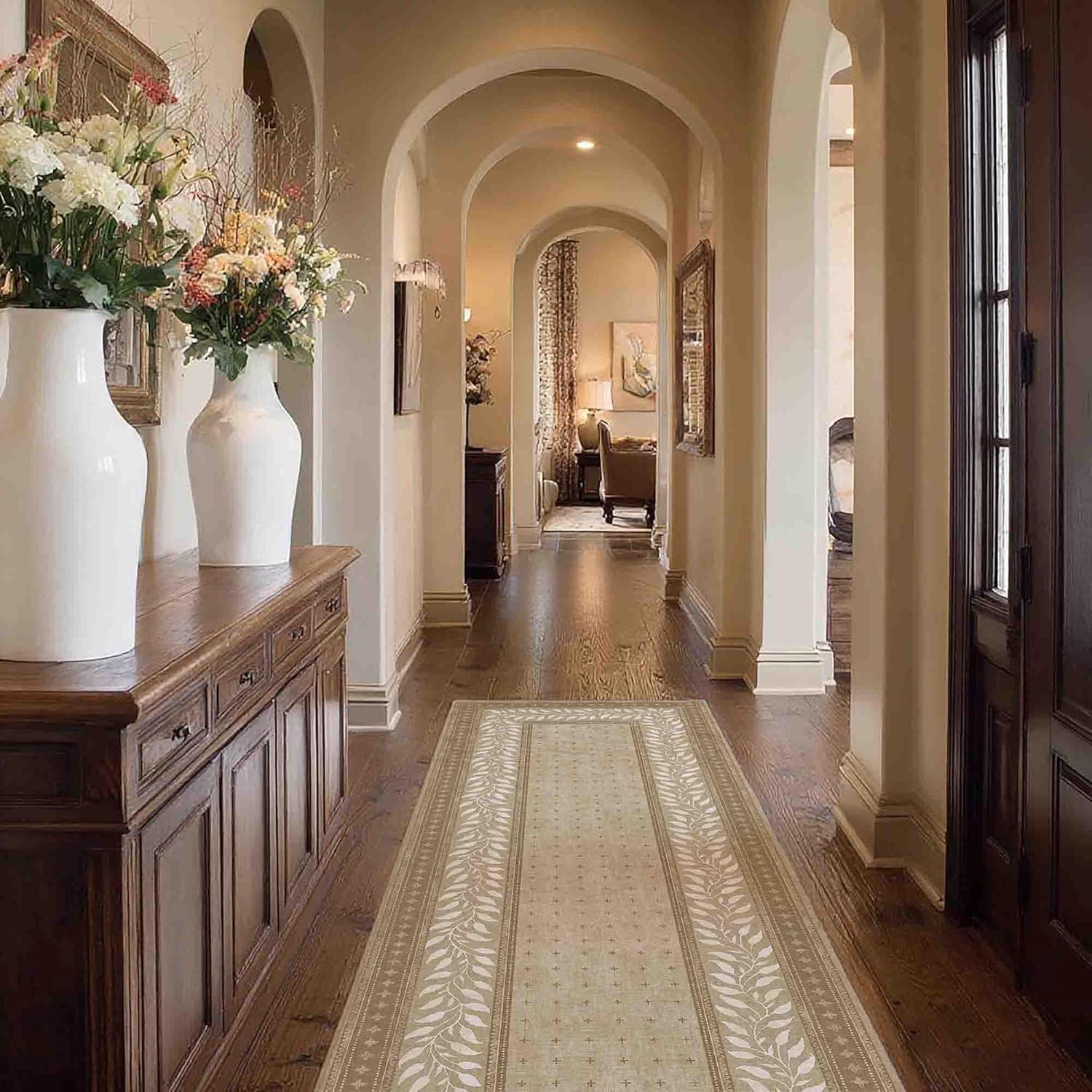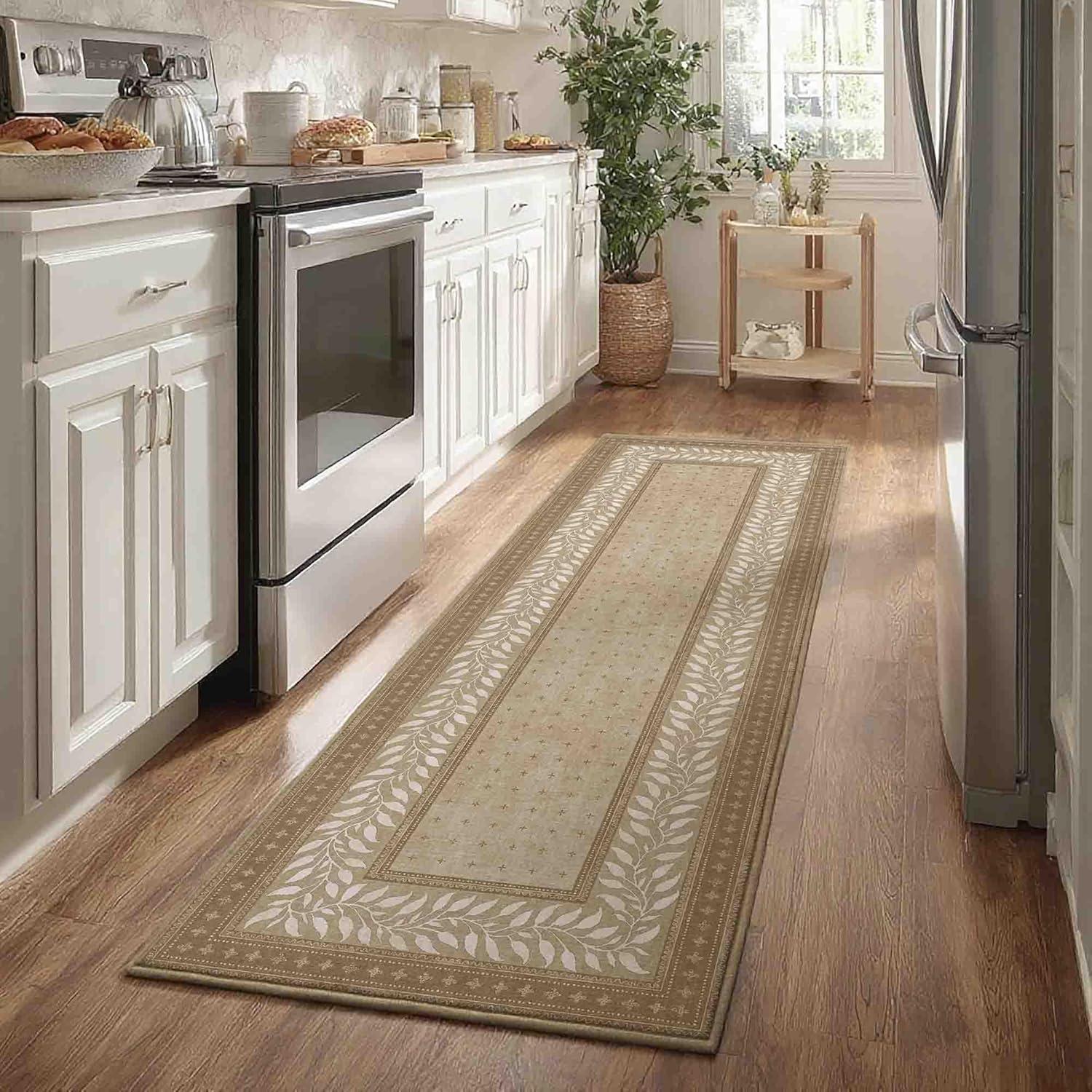 NICETOWN 8x10 Ultra-Thin Brown Oriental Rug for Bedroom, Tumble Washable Area Rugs 8x10, Boho Non-Slip Vintage Living Room Rugs, Oriental Carpet Entrance for Kitchen, Laundry, Bathroom, Bedroom(Natural)