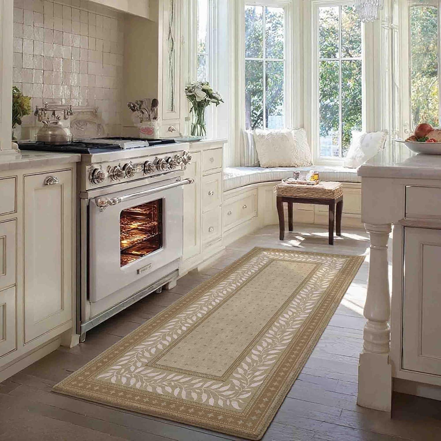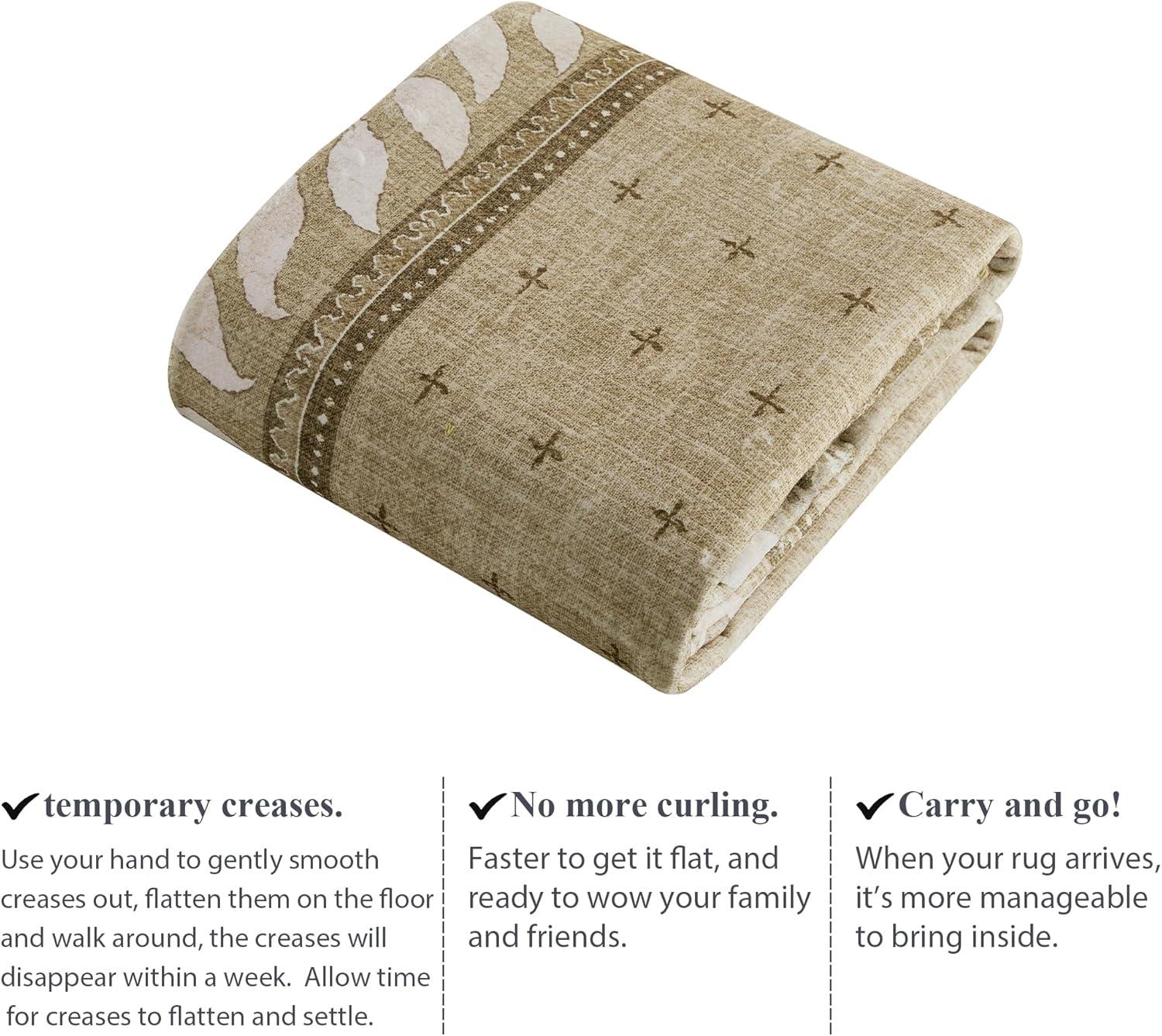 Non-slip Backing: The large washable rug is made of synthetic latex backing, which helps to keep the rug in place, prevents high traffic areas and under doorways or rolling furniture from scuffing the floor. This makes it safer for your children or pets to play during daily use, and you will keep the elderly living in your home safe.(Keep the bottom of the rug always be dry.)