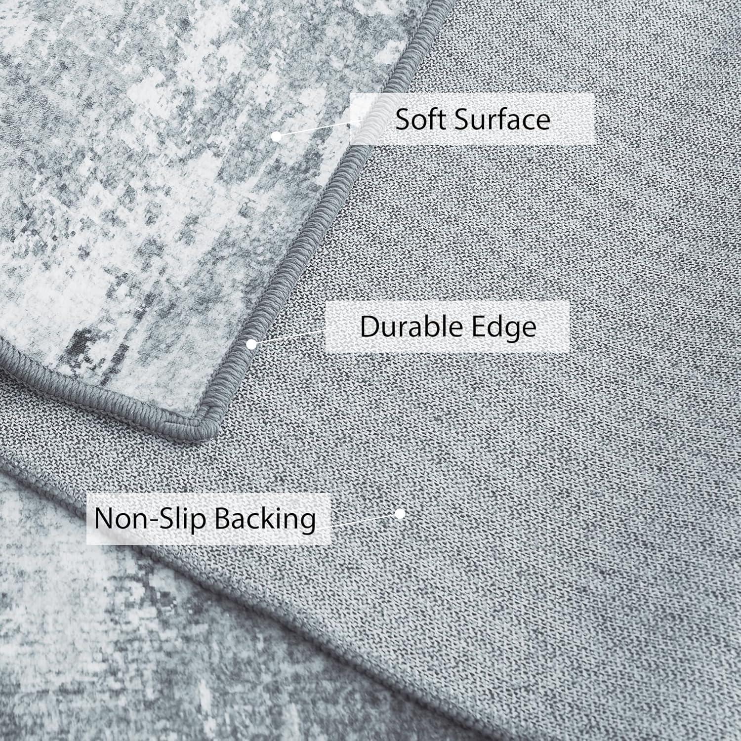 Non-slip Backing: The large washable rug is made of synthetic latex backing, which helps to keep the rug in place, prevents high traffic areas and under doorways or rolling furniture from scuffing the floor. This makes it safer for your children or pets to play during daily use, and you will keep the elderly living in your home safe.(Keep the bottom of the rug always be dry.)