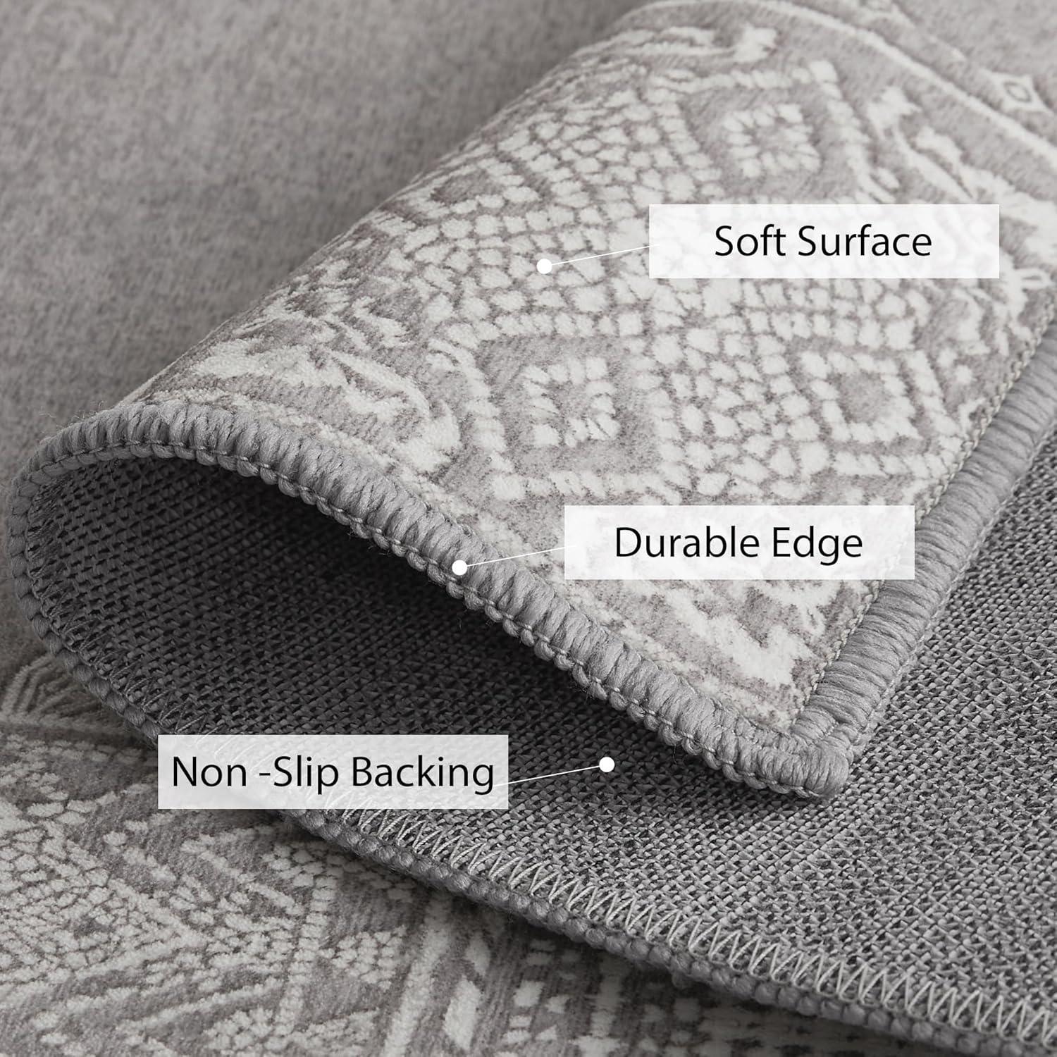 NICETOWN 8×10 Ultra-Thin Brown Oriental Rug for Bedroom, Tumble Washable Area Rugs 8×10, Boho Non-Slip Vintage Living Room Rugs, Oriental Carpet Entrance for Kitchen, Laundry, Bathroom, Bedroom(Silver Grey)