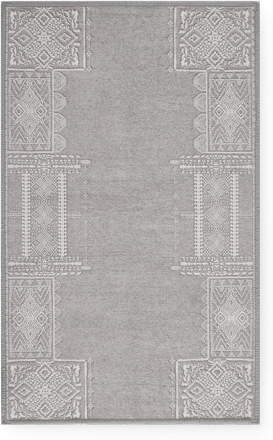 NICETOWN 8x10 Ultra-Thin Brown Oriental Rug for Bedroom, Tumble Washable Area Rugs 8x10, Boho Non-Slip Vintage Living Room Rugs, Oriental Carpet Entrance for Kitchen, Laundry, Bathroom, Bedroom(Silver Grey)