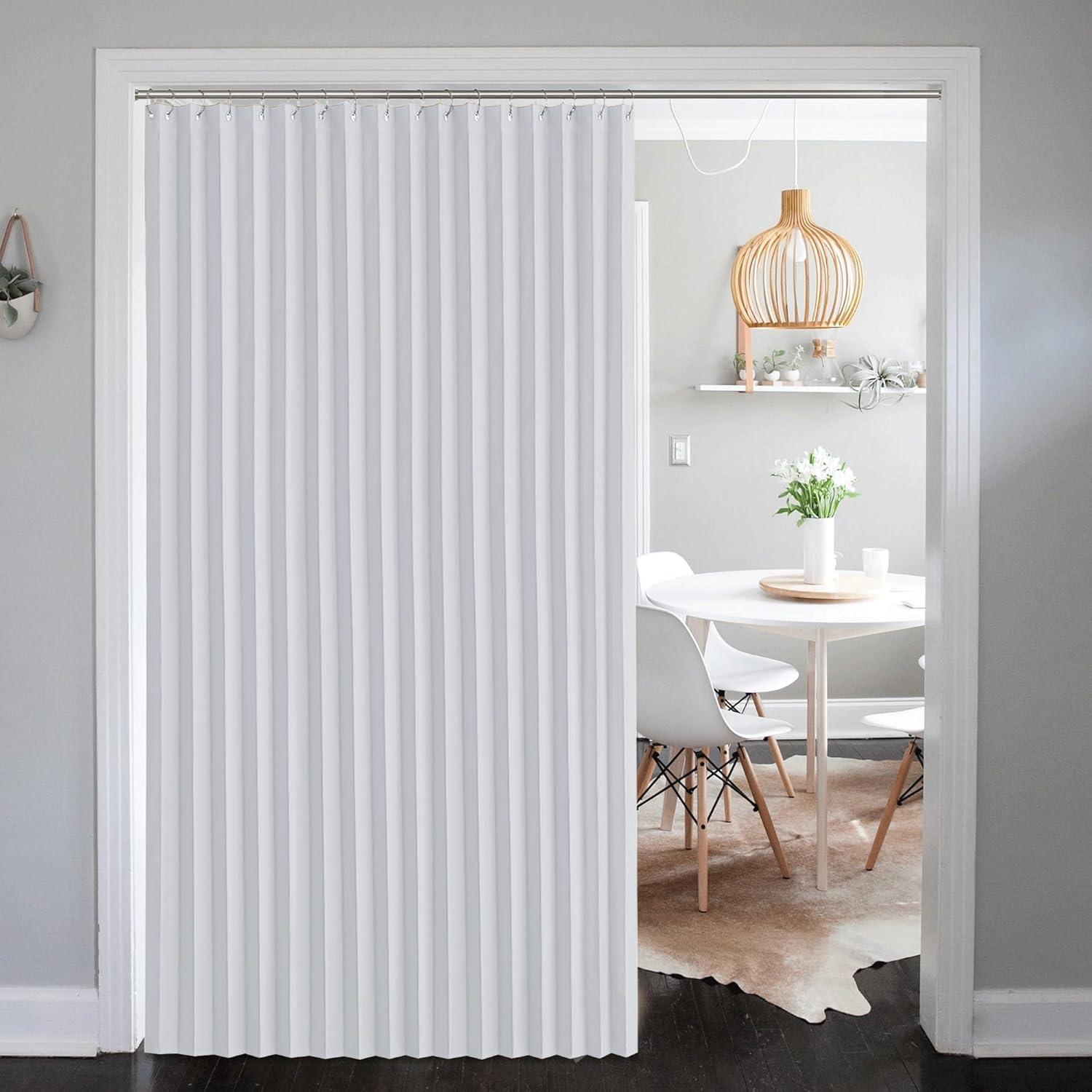 NICETOWN Accordion Blackout Door Curtains for Doorway, Thermal Insulated Privacy Closet Curtains Room Divider Sliding Door Shade for Living Room/Bathroom/Bedroom, 1 Panel with Hooks, W38 x L80, Grey(Greyish White)