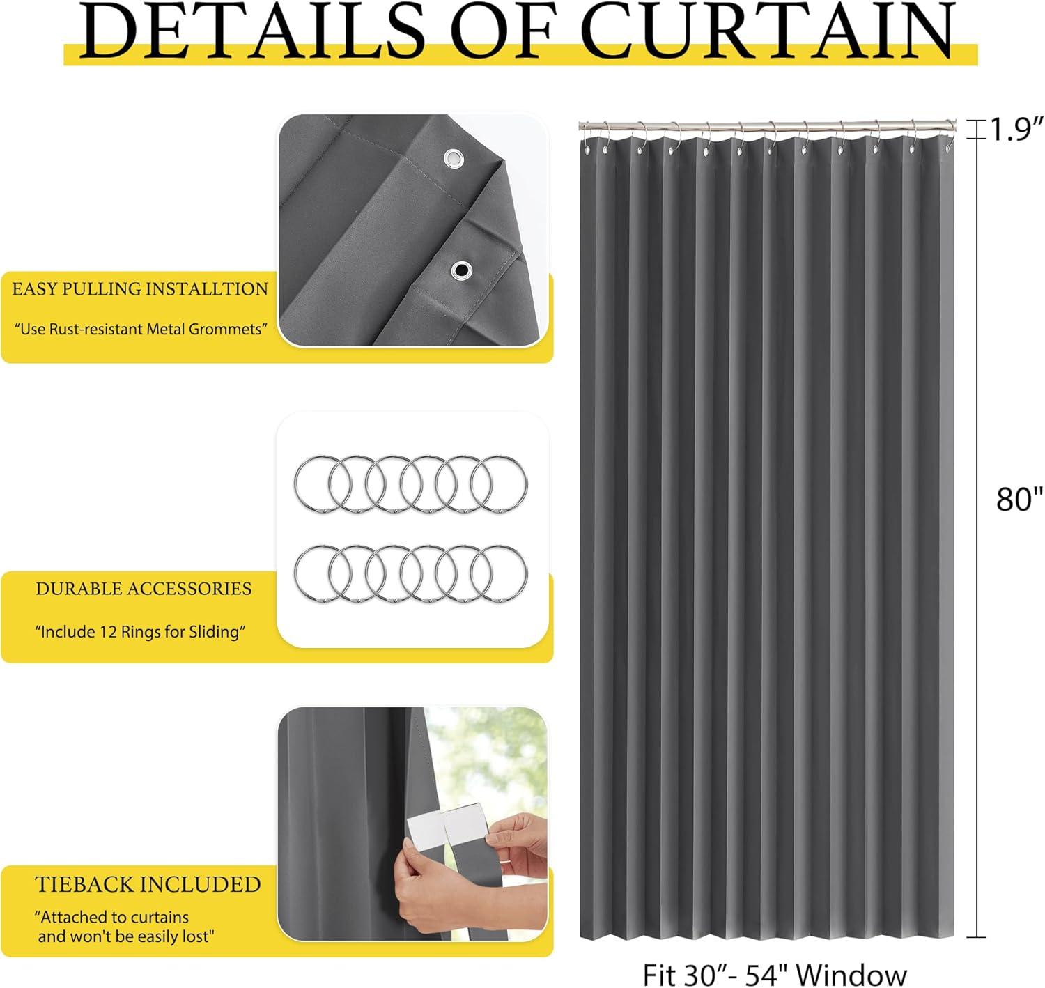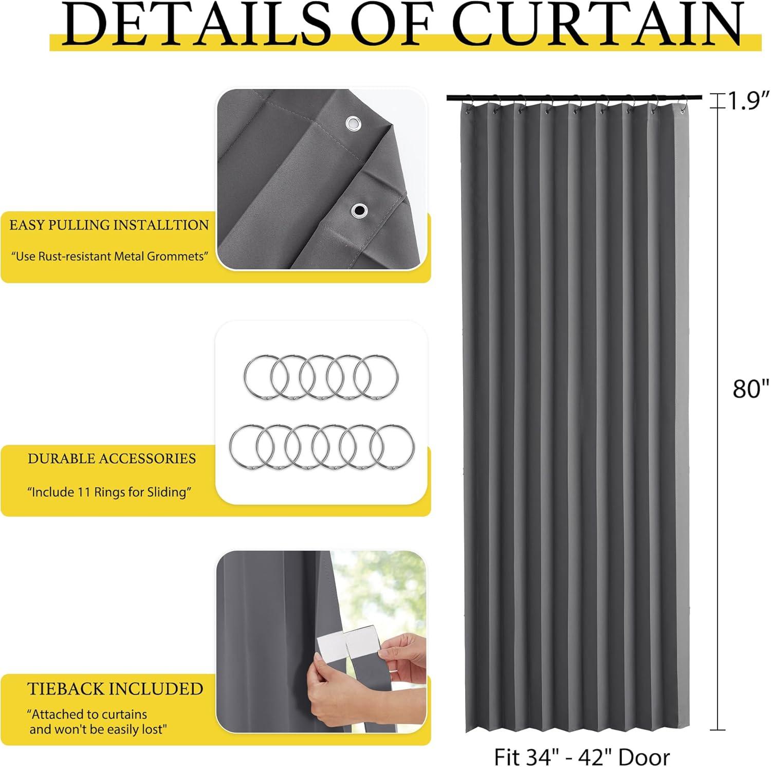 Product Info.: The door curtain package comes with 1 panel and Hooks. Each panel measures 38 inches wide by 80 inches long. The length excludes the rings.It's easy hanging and removing on an existing rod.