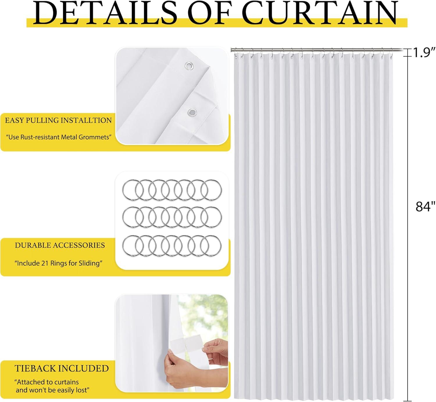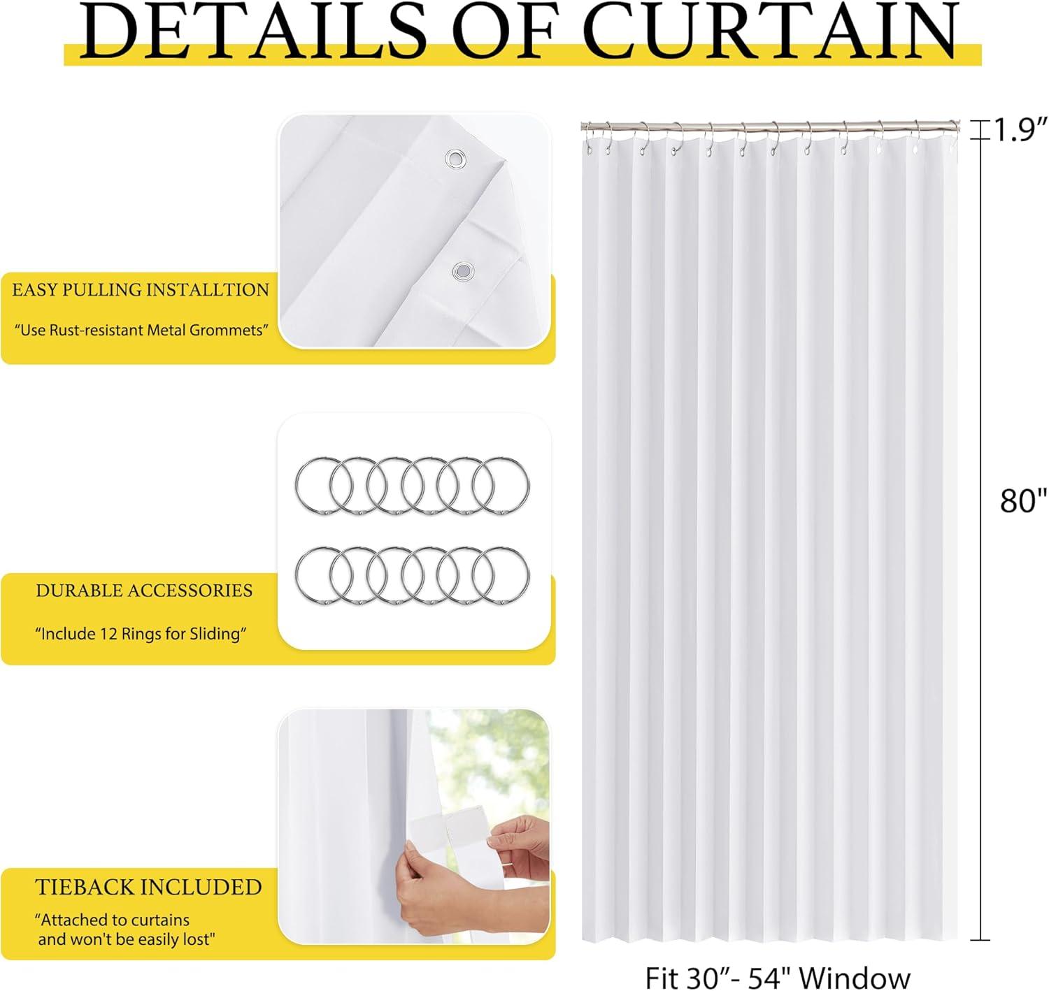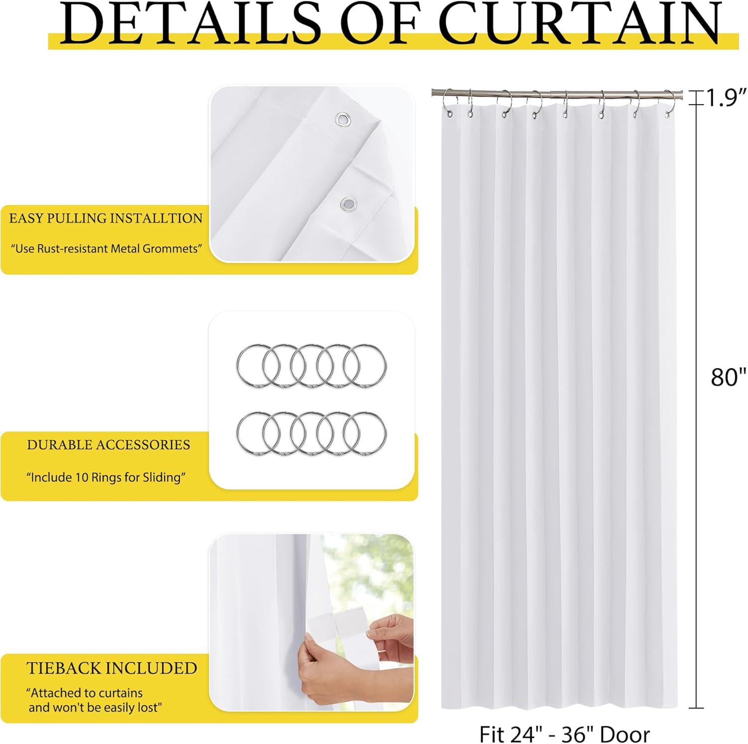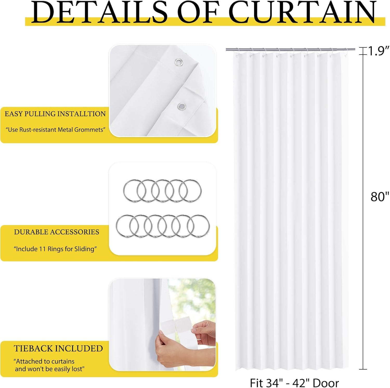 Product Info.: The door curtain package comes with 1 panel and Hooks. Each panel measures 38 inches wide by 80 inches long. The length excludes the rings.It's easy hanging and removing on an existing rod.