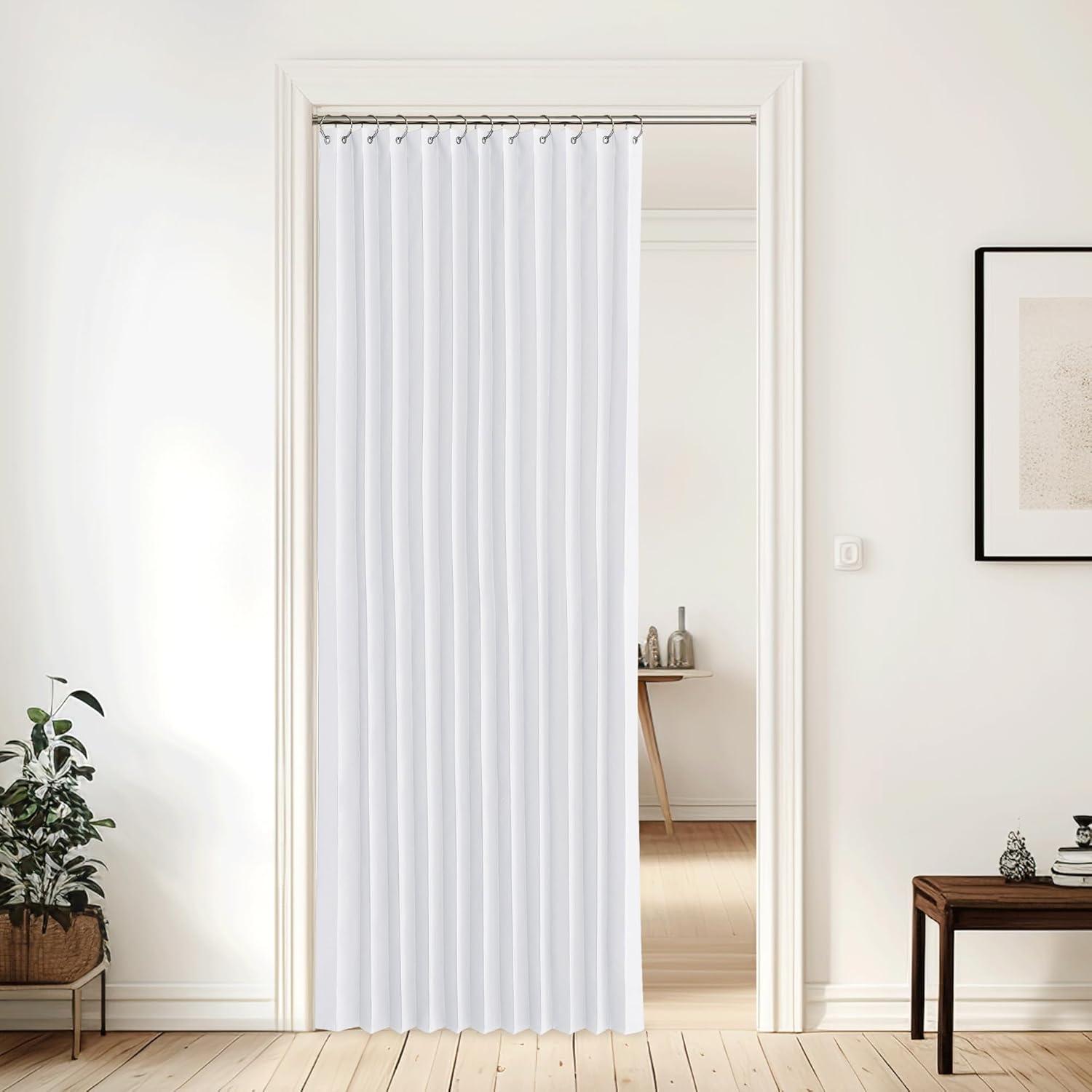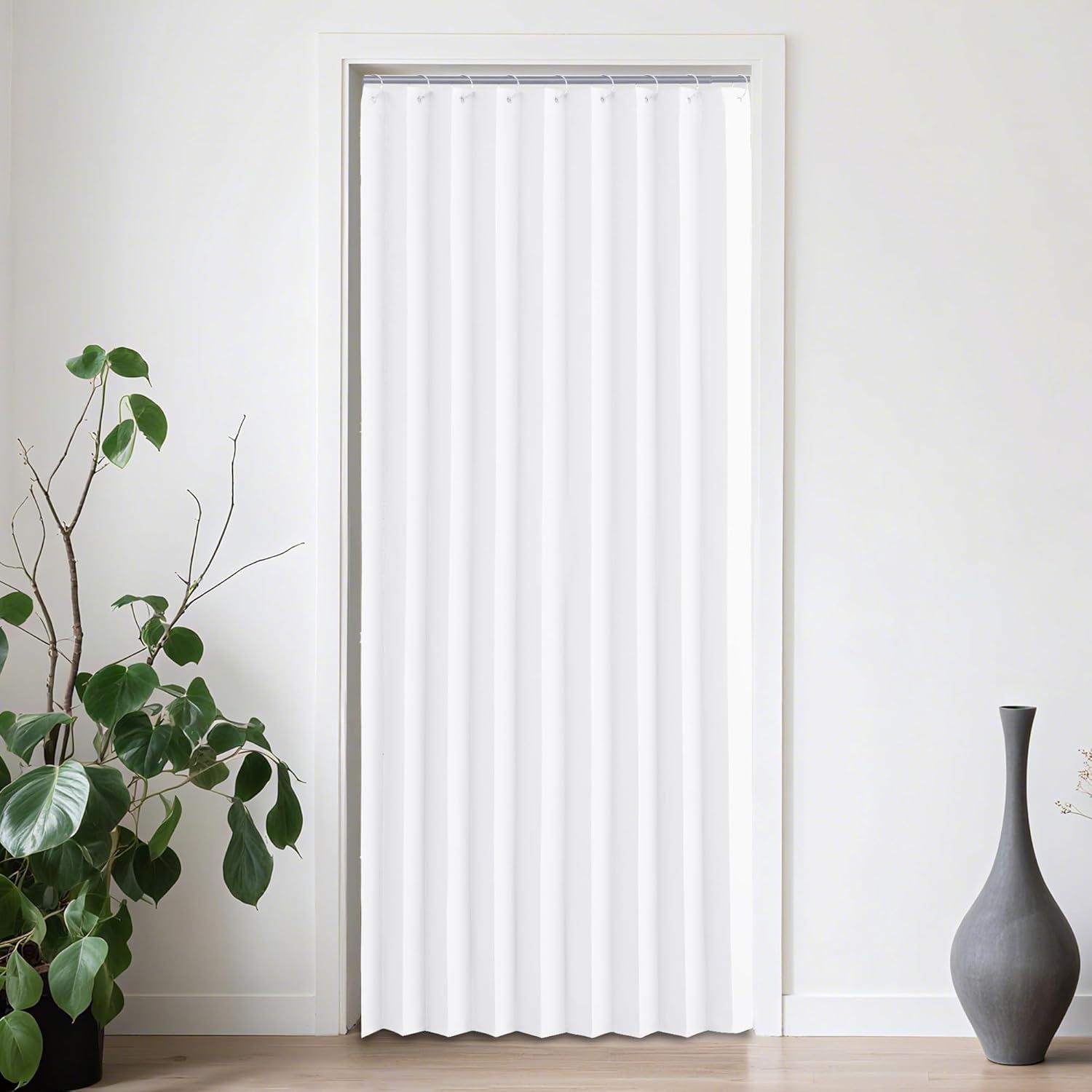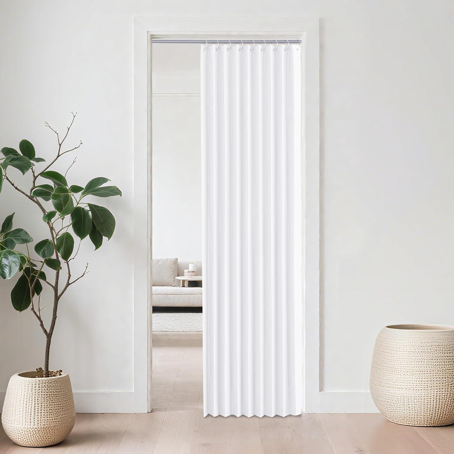 NICETOWN Accordion Blackout Door Curtains for Doorway, Thermal Insulated Privacy Closet Curtains Room Divider Sliding Door Shade for Living Room/Bathroom/Bedroom, 1 Panel with Hooks, W38 x L80, Grey(Pure White)