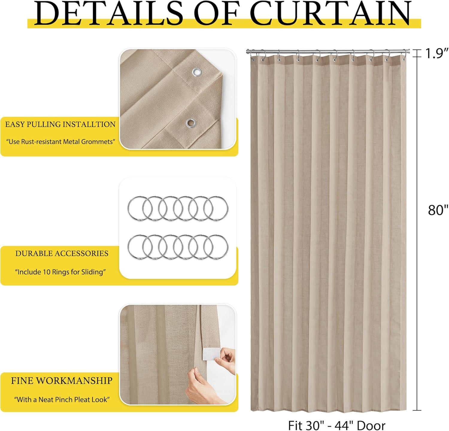 Product Info.: The door curtain package comes with 1 panel and Hooks. Each panel measures 38 inches wide by 80 inches long. The length excludes the rings.It's easy hanging and removing on an existing rod.