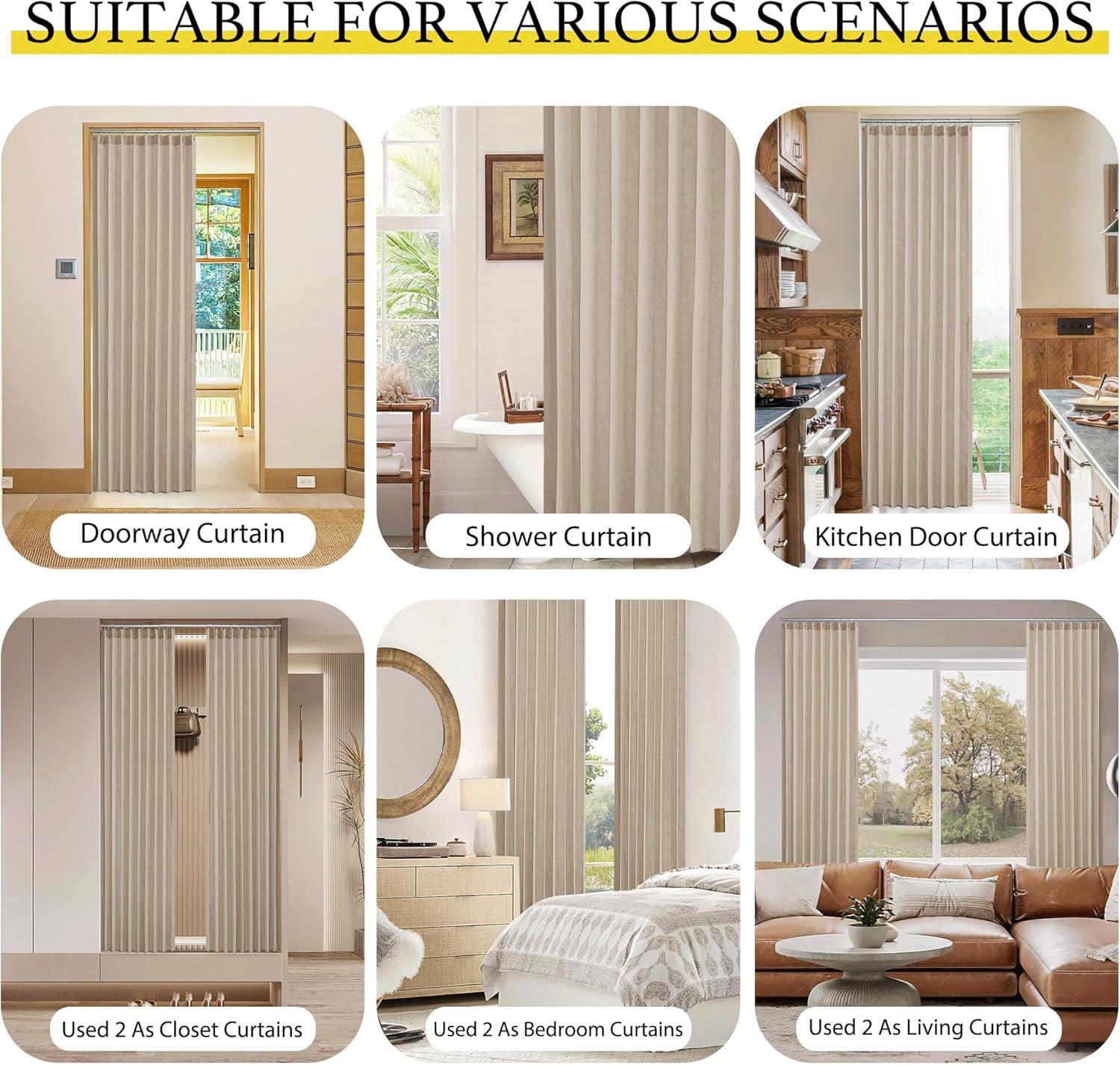 Versatile Home Decor: Use the simple, modern and soft drapery as an exterior door curtain or interior door curtain between kitchen, dining room, bedroom, living room, patio glass door, and closet, hallway.